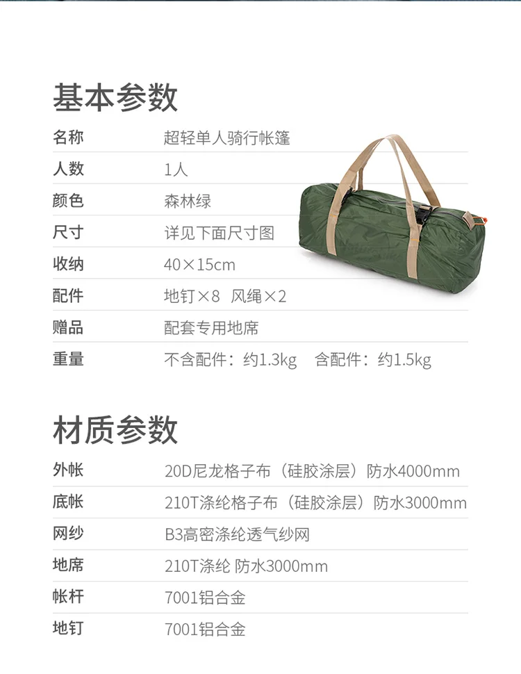 Inner tent: 20D waterproof breathable cloth B3 breathable mesh