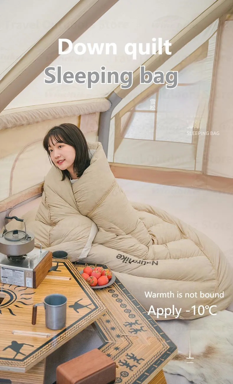 Naturehike Duck Down Sleeping Bag Ultralight Autumn Winter Spring Widened Sleeping Bag Hooded Windproof Waterproof -10℃ Outdoor