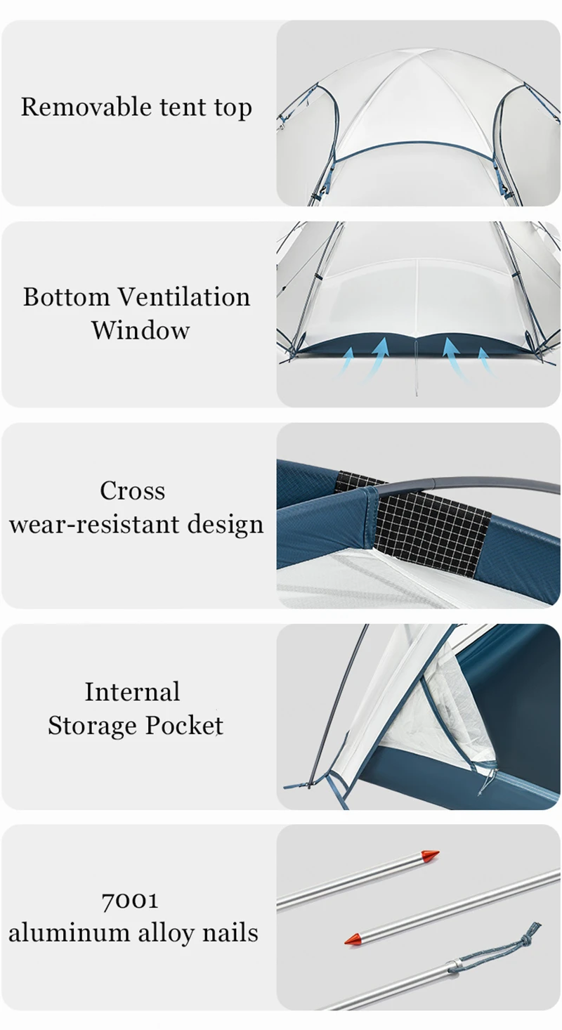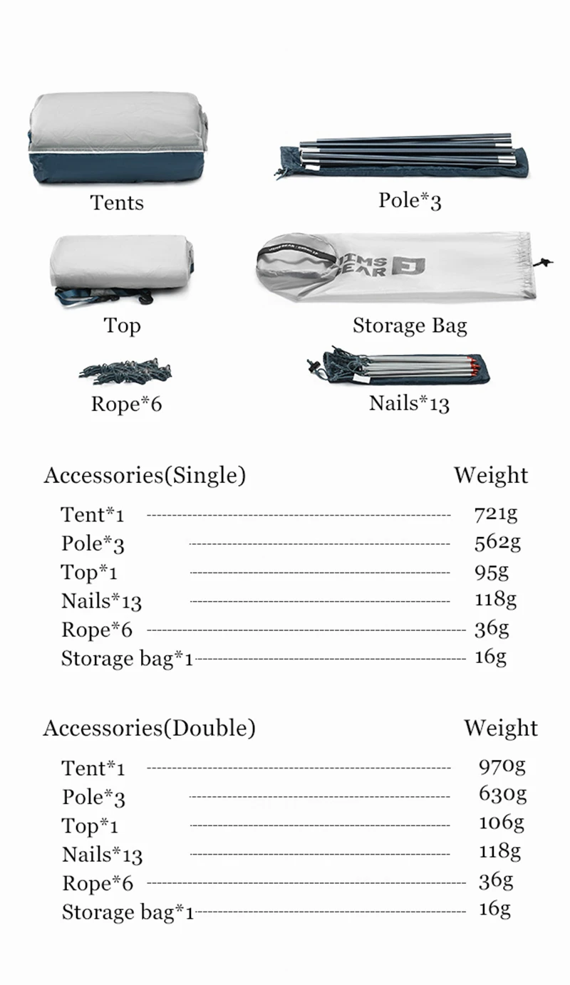 This tent has two models: single and double. Their designs are different. The single tent has a tent door and a window on the other side. The two-person tent has two doors that can be opened from both sides.