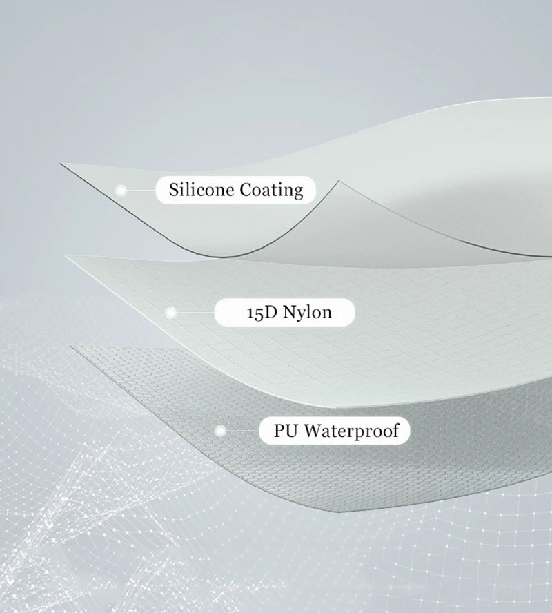 Material: Synthetic fibres,15D nylon silicone coated fabric