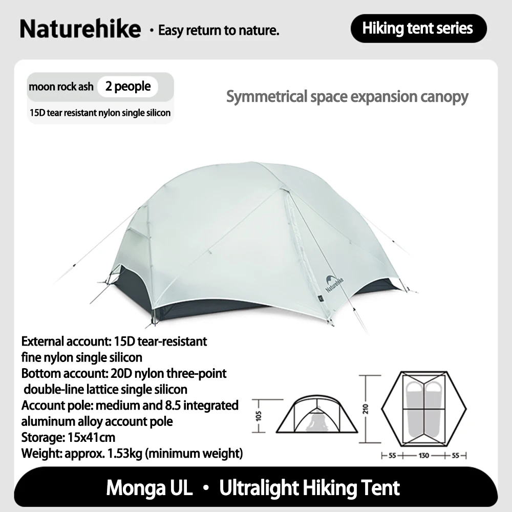 Naturehike Mongar UL 2 Person Backpacking Tent 15D Ultralight Travel Tent Waterproof Hiking Survival Outdoor Camping Tent
