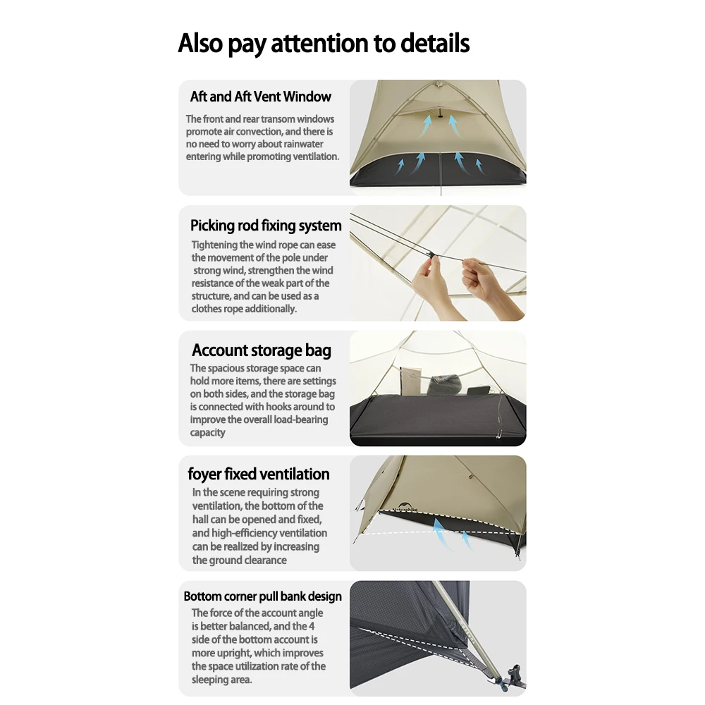 6. Excellent ventilation to alleviate condensation inside the tent.