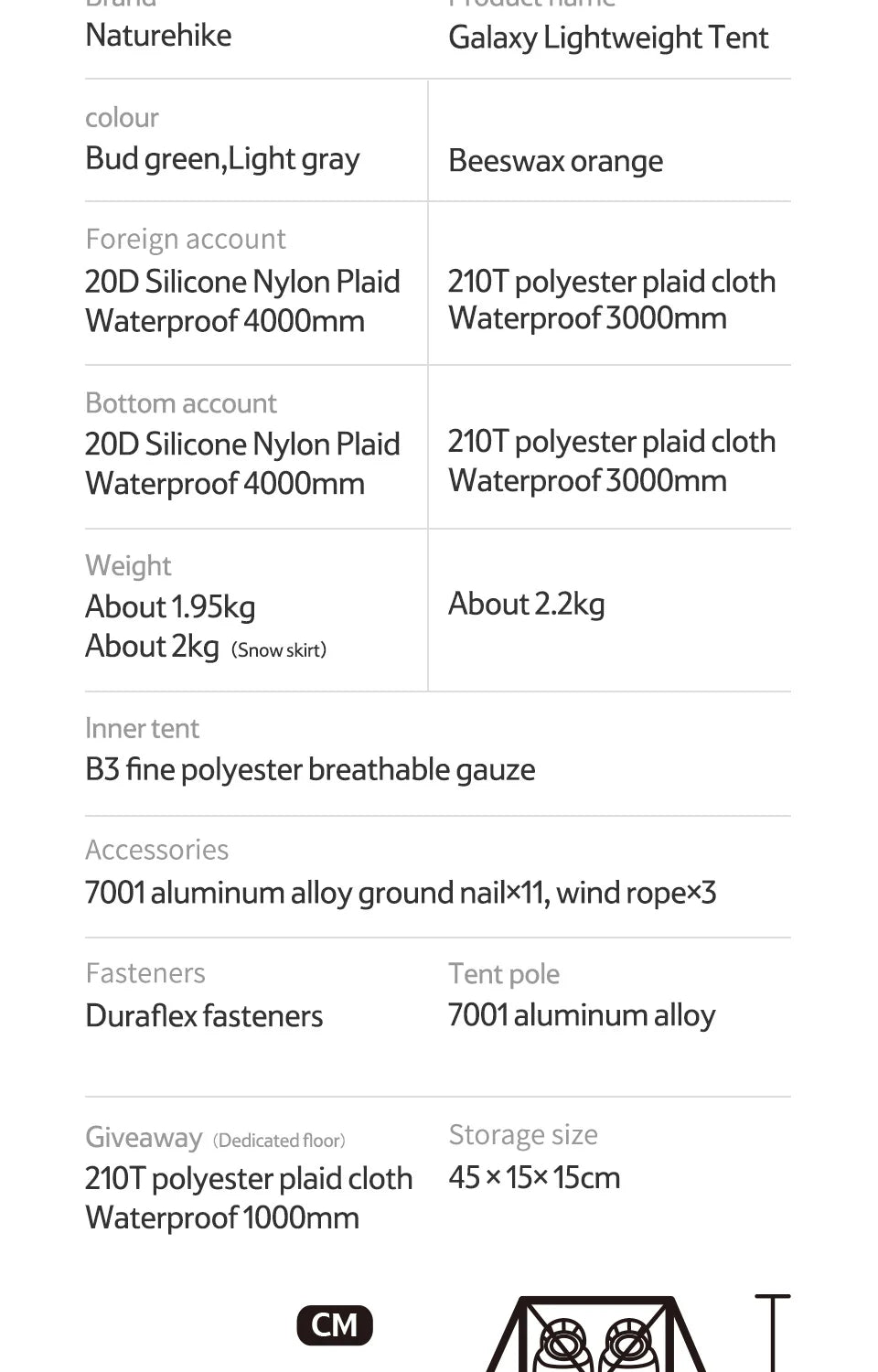 Outside Tent Waterproof Index: 2000-3000 mm