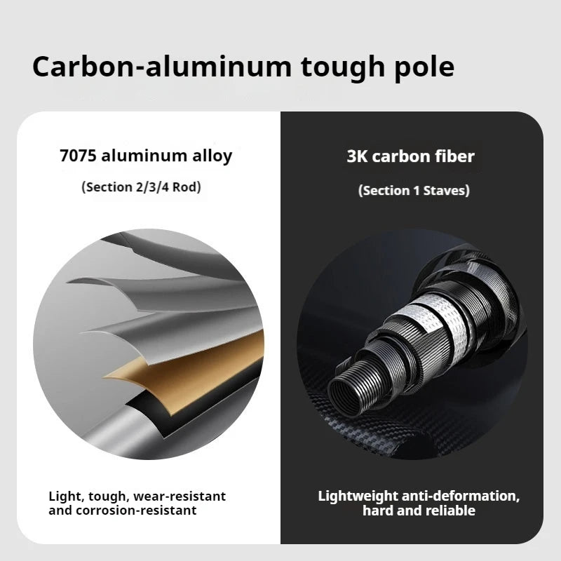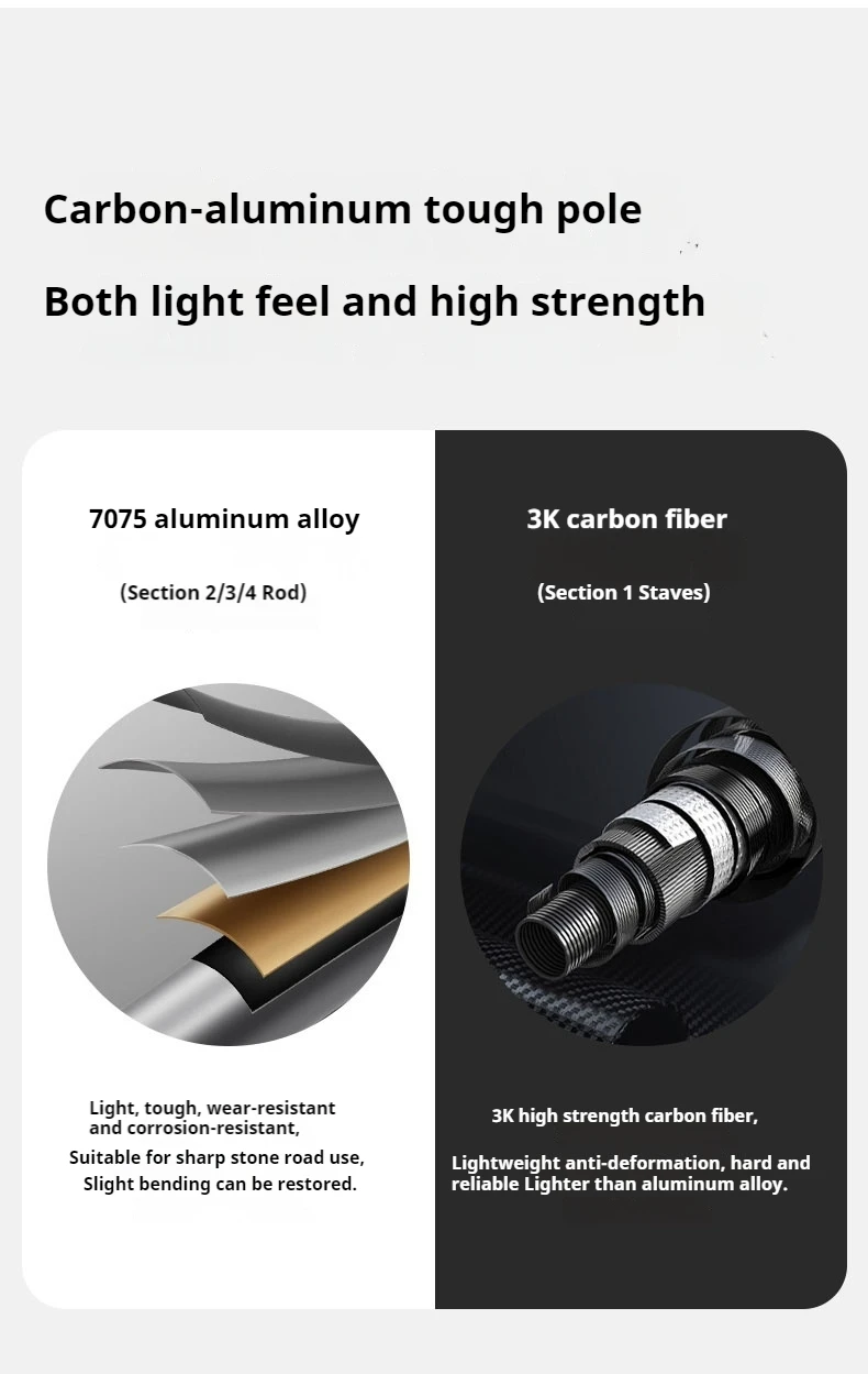 Pole Body: 7075 Aluminum Alloy + 3k Carbon Fiber