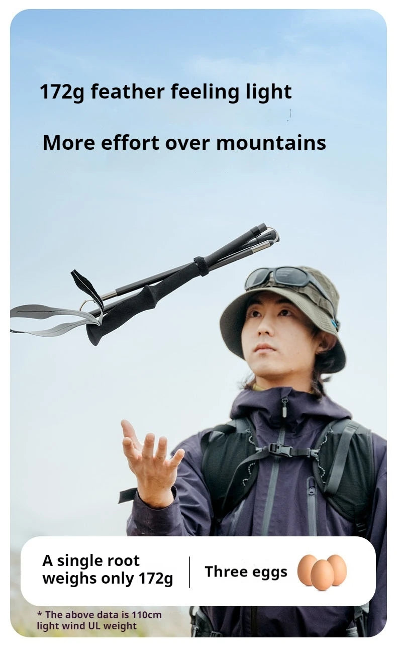 Naturehike Outdoor Alpenstock Carbon 4-sections Foldable Aluminum Alloy Ultralight Trekking Pole Adjustable Hiking Walking Stick