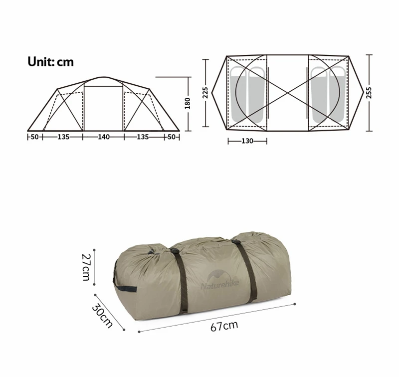 Naturehike Shandi 2.0 Tunnel Dome Tent for 4 Person Family Outdoor Camping Double Layers Waterproof 30D polyester Hiking Tents