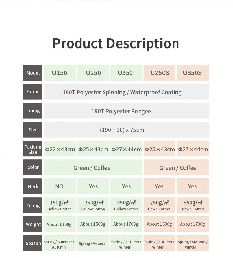 Sleeping Bag Temperature Scale Category: Spring and Autumn Sleeping Bag