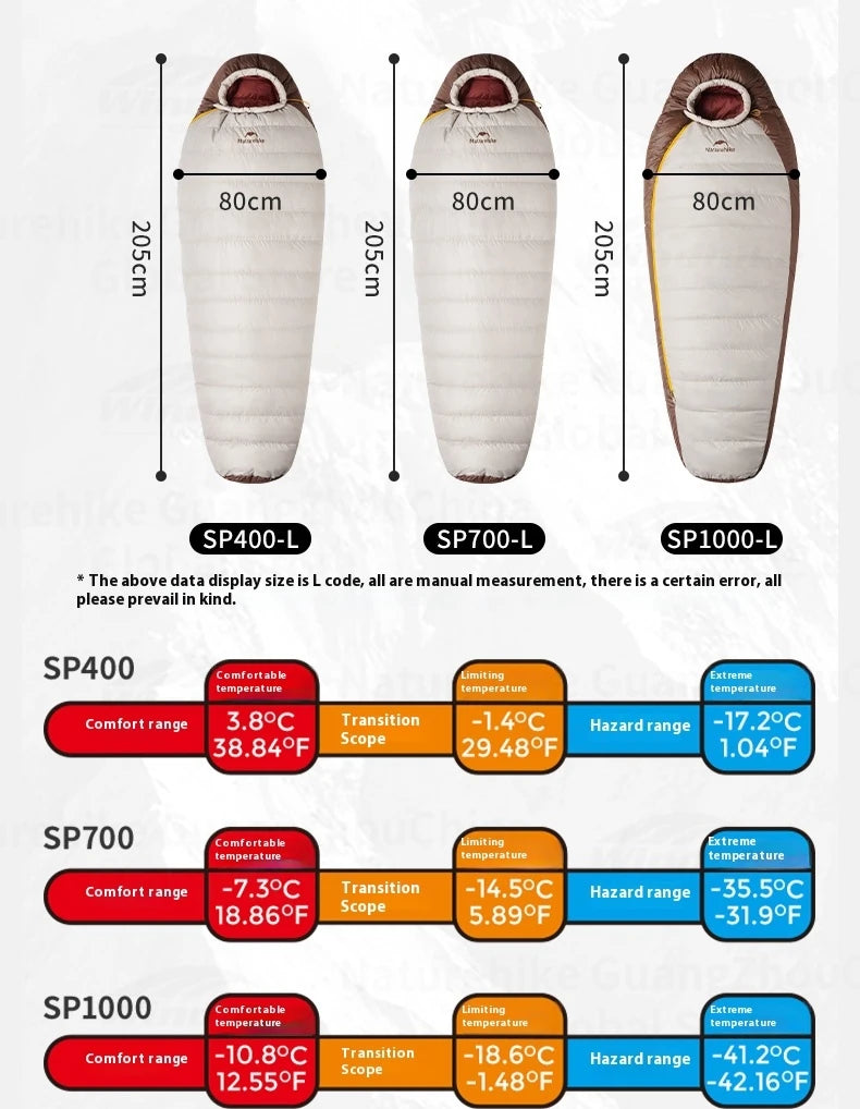 Naturehike Snowbird Sleeping Bag 650FP Duck Down Winter Warm Outdoor Camping Ultralight Hiking Mummy Sleeping Bag -18.6°C~3.8°C