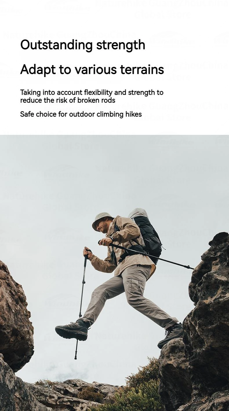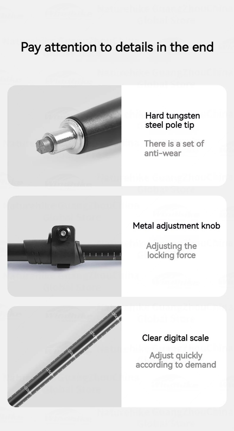 Naturehike ST03 7075 Aluminium Alloy Folding Trekking Pole Walking Stick Climbing Retractable 3 Sections Telescopic Alpenstocks