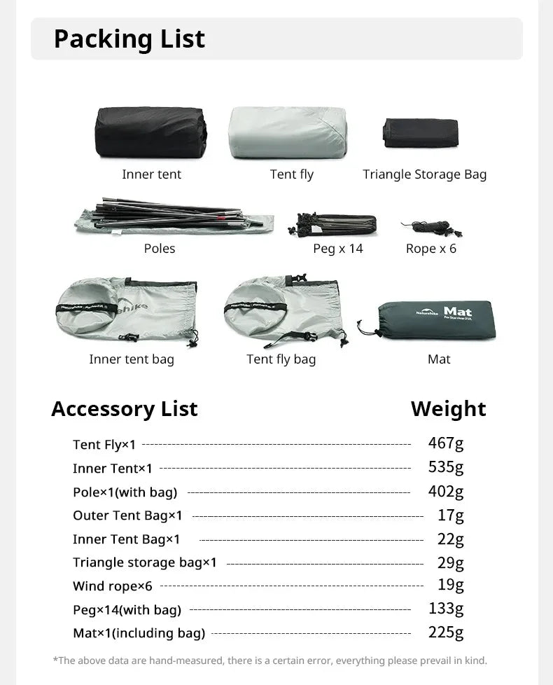 Naturehike Star River UL 2 Person Camping Tent Ultralight Waterproof 15D Double Layer 3 Seasons Outdoor Travel Hiking Tent