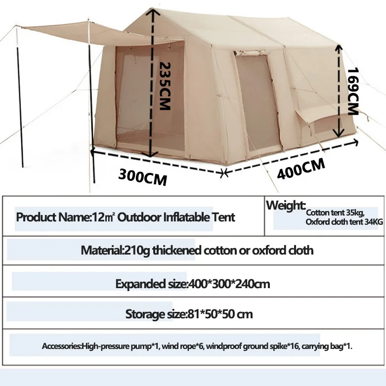 New 12 ㎡ Inflatable Tent Set Two Bedrooms Flysheet for 4~6People Hiking Camping Accessory Sun & Rain Protection Marquee