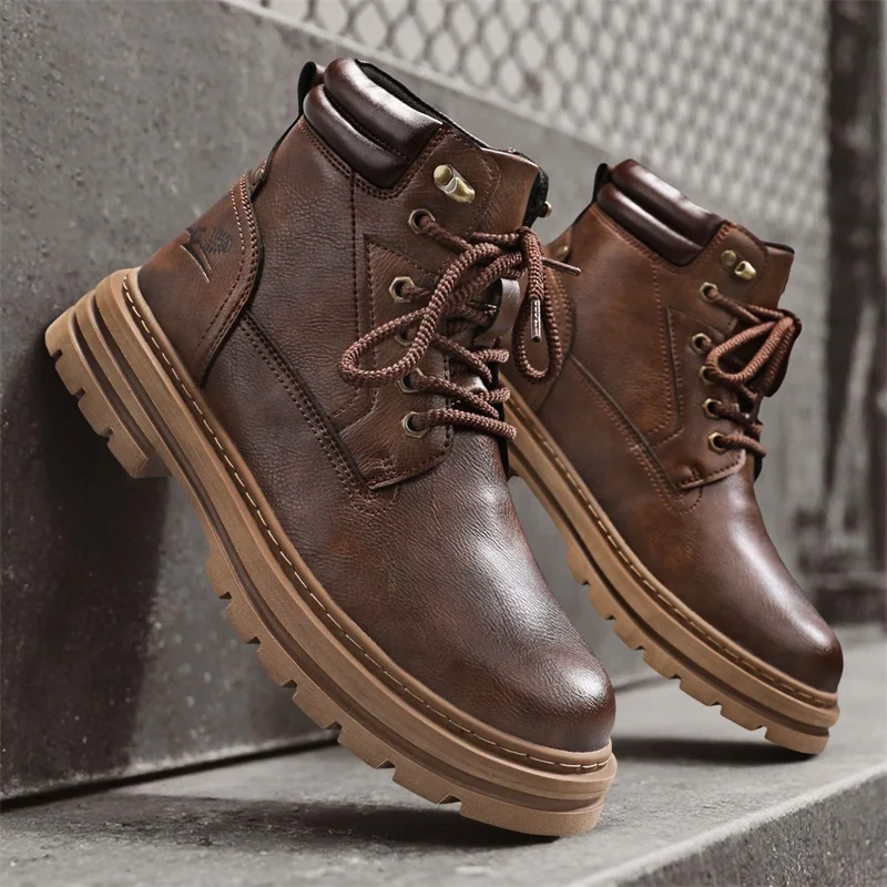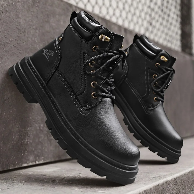 New Autumn Winter Men High Top Shoes Fashion Motorcycle Boots Outdoor Leisure Ankle Boots Comfortable Man Lace-Up Botas Sneakers