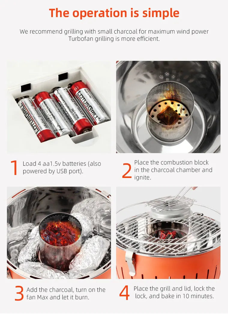 New Design Portable Charcoal BBQ Grill Stainless Steel Turbo BBQ Grill Outdoor