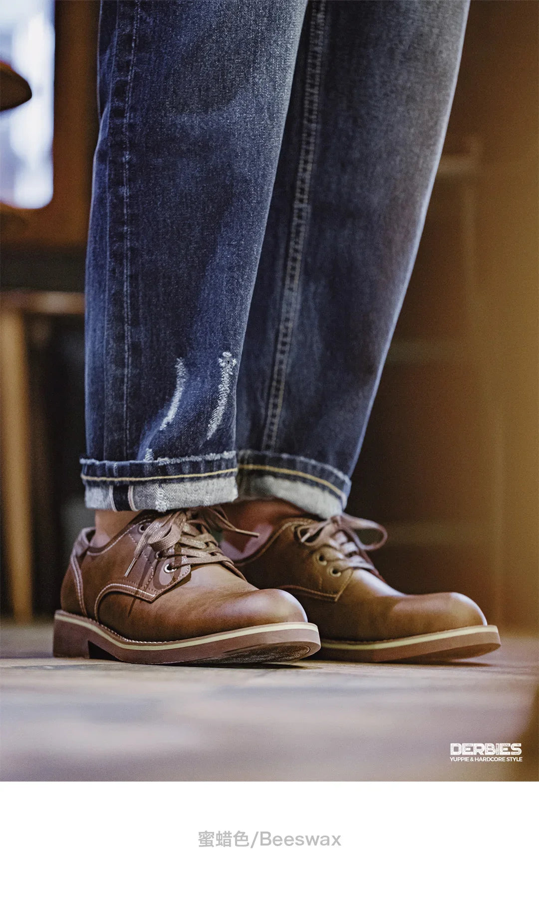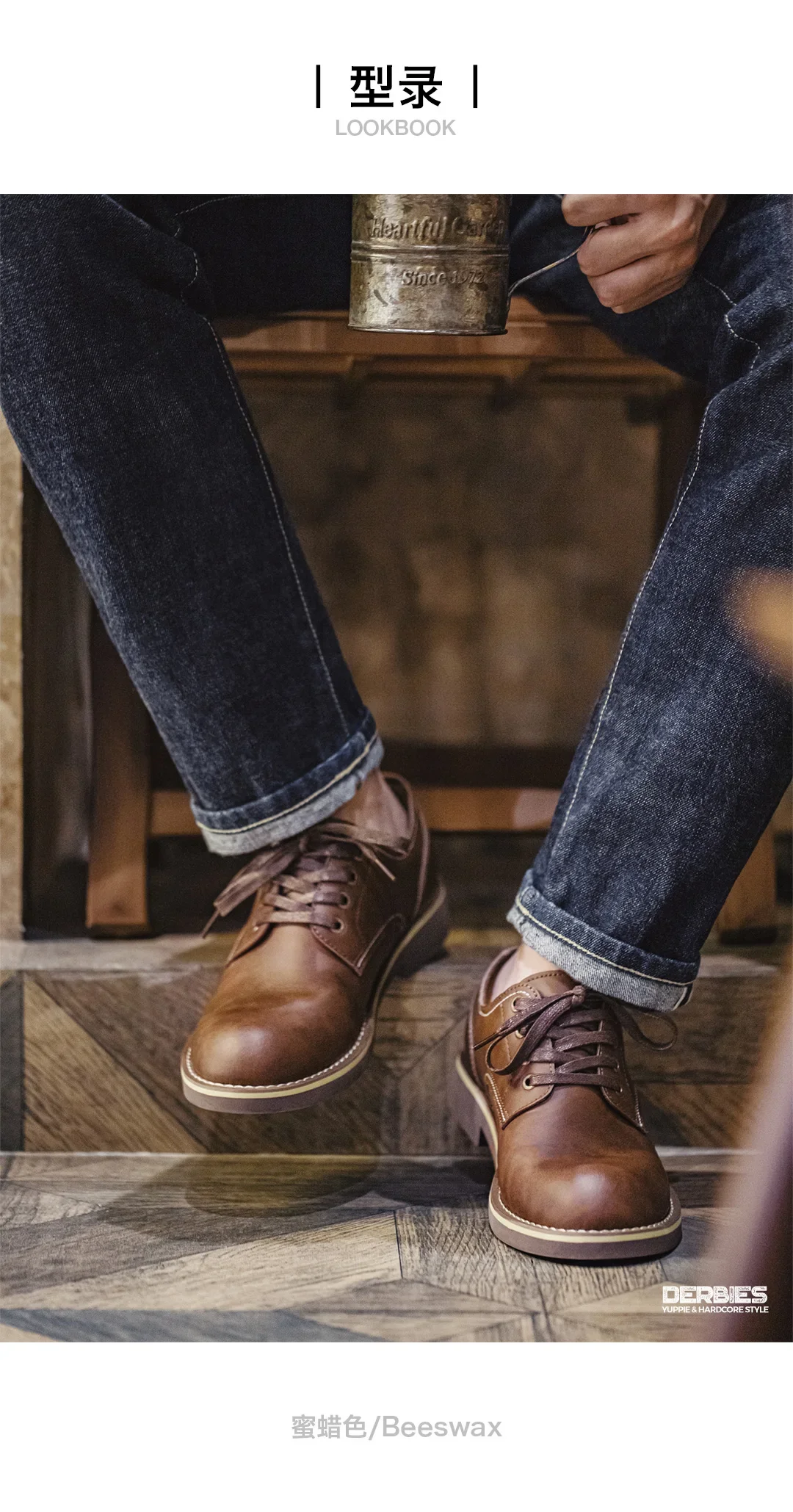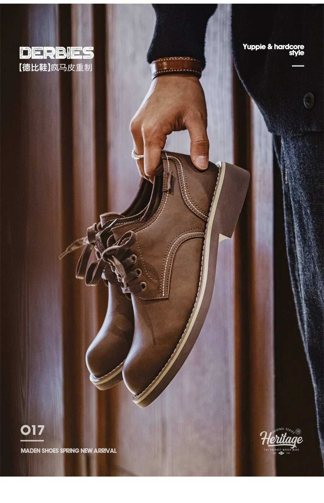 New Maden Men's Low-top Work Boots Round-toed Crazy Horse Leather Craft Shoes Casual Leather Shoes Vintage Streetwear Boots