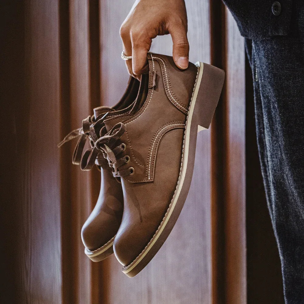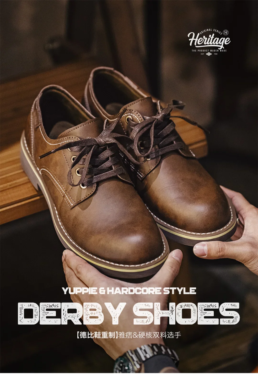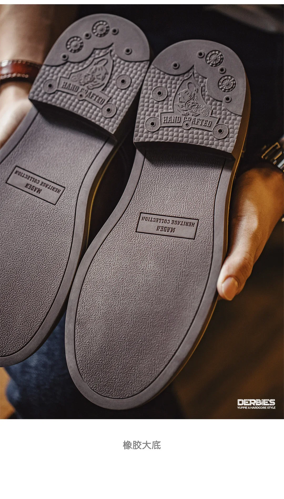 New Maden Men's Low-top Work Boots Round-toed Crazy Horse Leather Craft Shoes Casual Leather Shoes Vintage Streetwear Boots