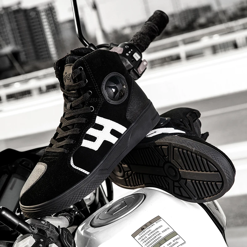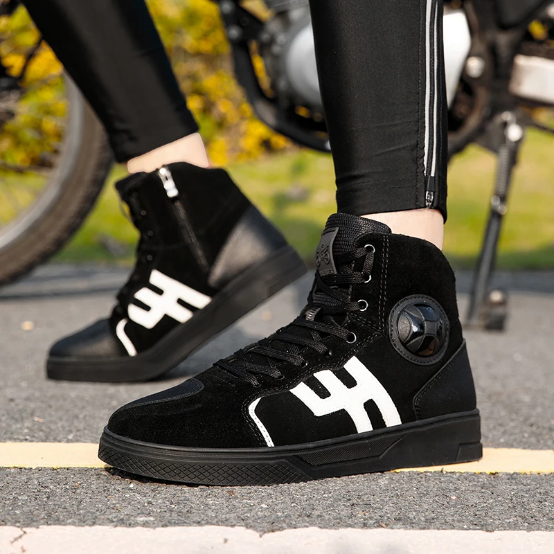 NEW Men's Leather Motorcycle Shoes Anti Slip Wear-resistant Motos Protective Boots Breathability Motocross Racing Riding Shoes