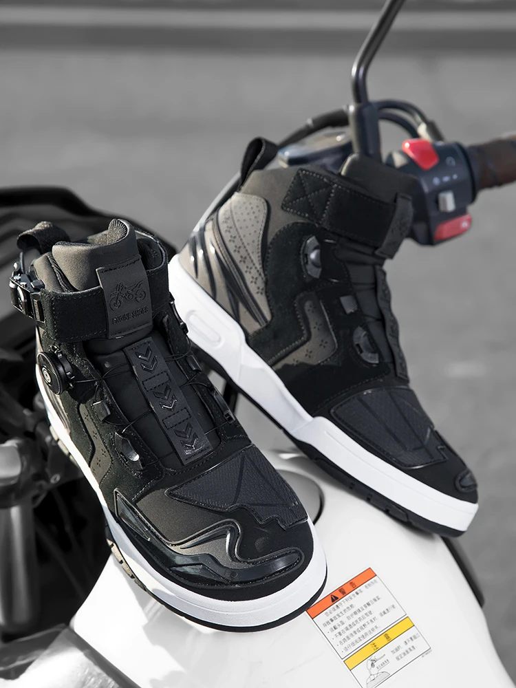 New Men's Motorcycle Boots Ankle Motocross Racing Shoes black Breathable Biker Boots Anti-slip Shoes Leather Motorcyclist Boots