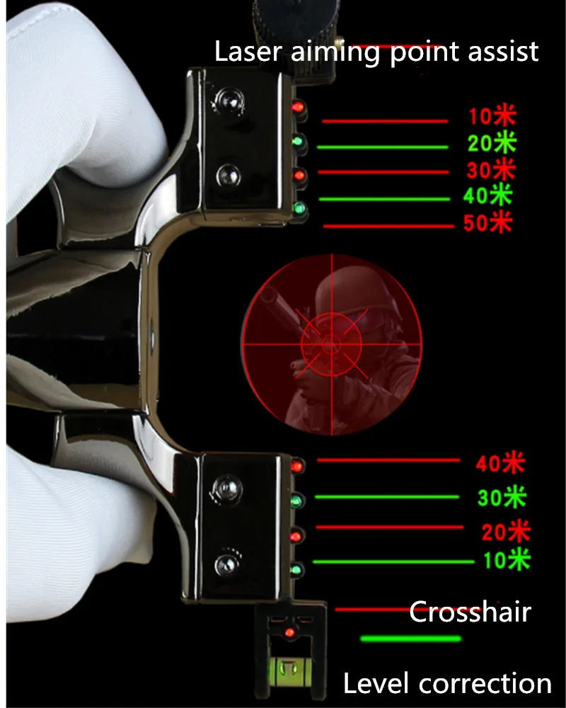2. The slingshot sight is equipped with a level instrument that allows the novice to quickly master the balance.