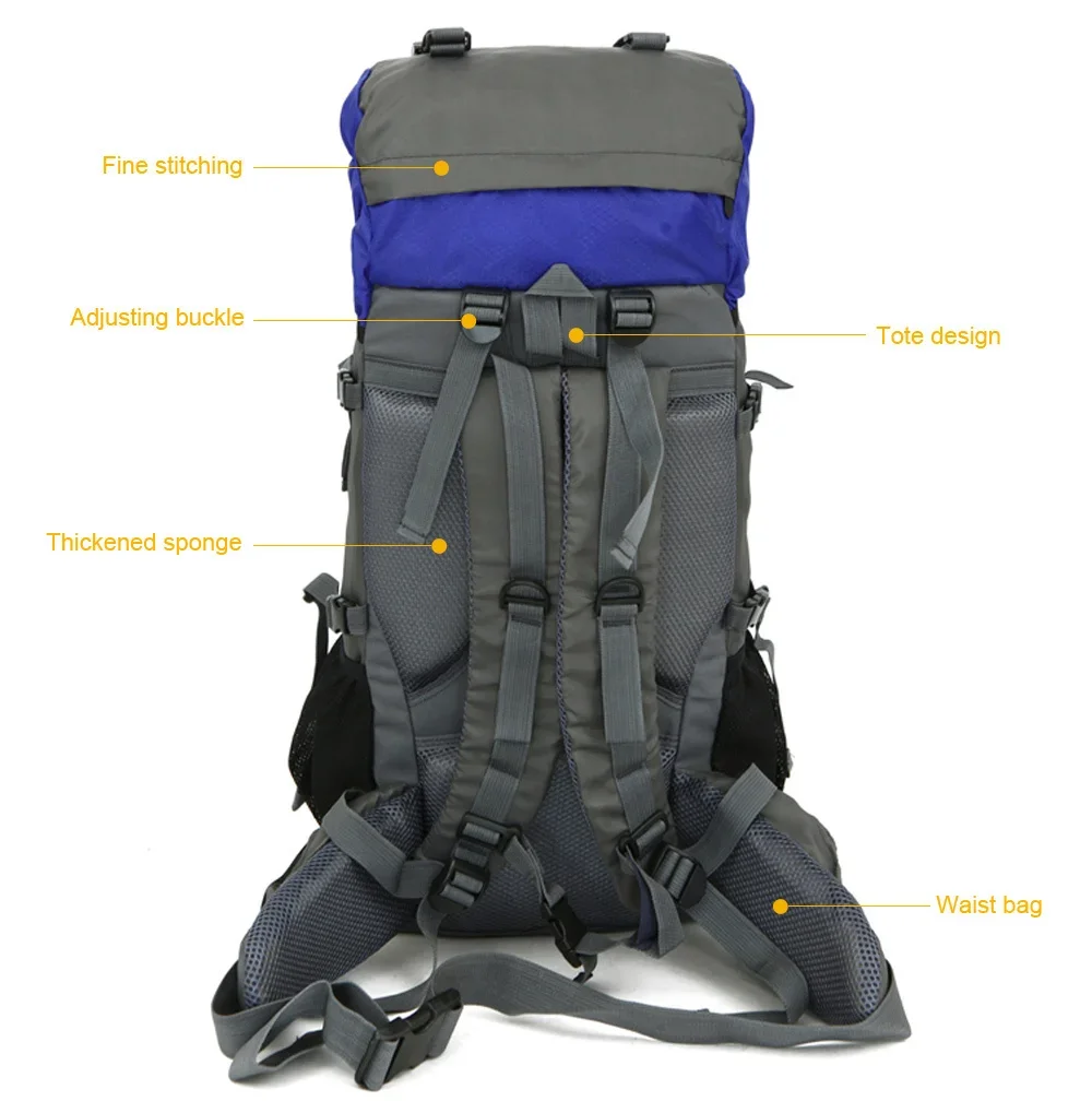 Nylon Water Resistant Outdoor Hiking Backpack 60L Large Capacity Camping Climbing Sports Bag Backpack Man Woman Riding Rucksack