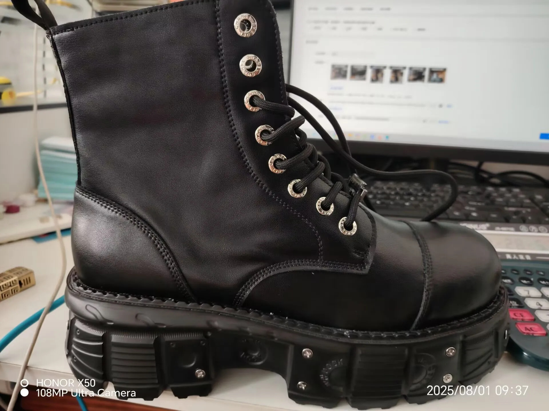 Omet Dark Motorcycle Heavy Metal Platform Cross-border Boots Women 2024 Spring New Female Punk Small Leather Shoes Men