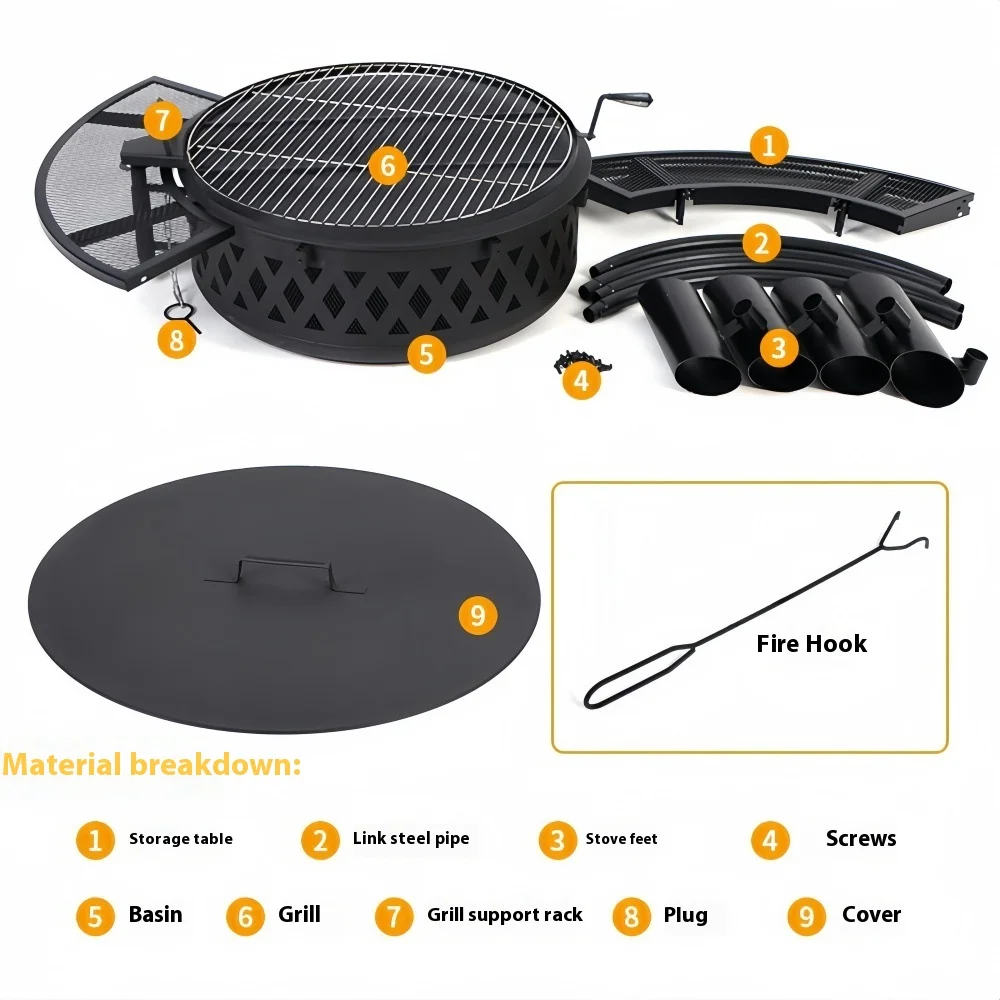 Outdoor barbecue grills, household firewood heating stoves, patio fire pits, villa bonfire pits, fire pit tables for gathering