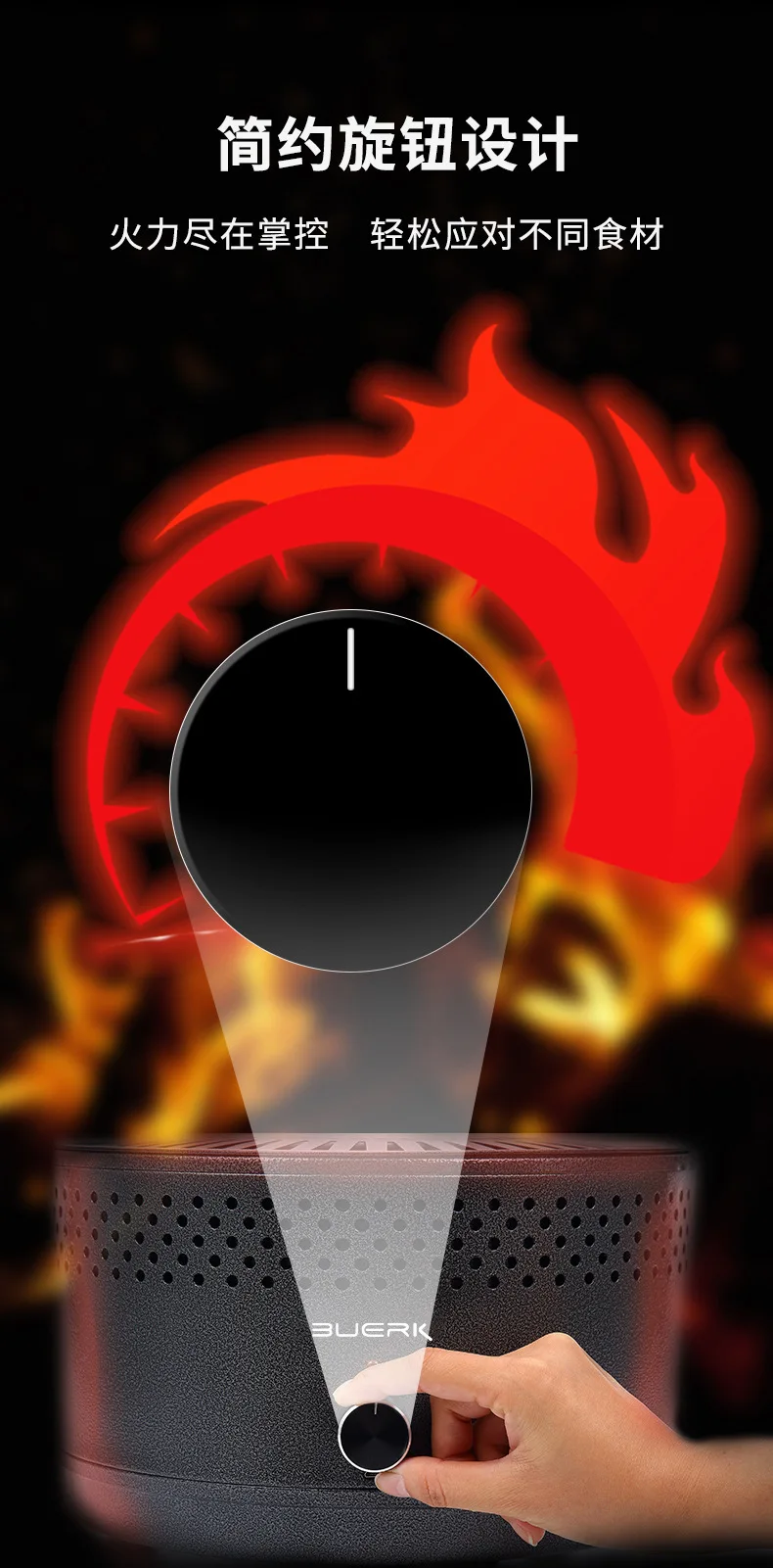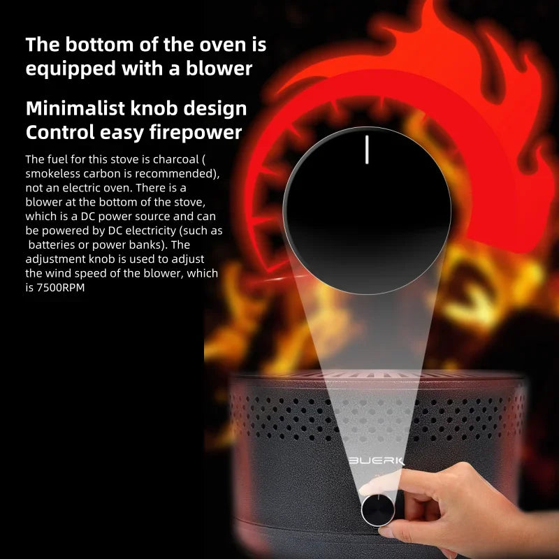 Feature: 1. Precise Temperature Control: Achieve delicious results with ease by using the temperature control knob to adjust heat for various cooking needs. Experience perfectly cooked meals with enhanced flavor and nutrition. 2. Versatile Cooking Options: This outdoor camping grill and indoor cooktop is designed for multiple cooking methods, including frying, grilling, roasting, and boiling. Explore a wide range of culinary adventures to satisfy your taste buds. 3. Non-stick Cooking Surface: Enjoy effortless cooking and easy cleanup with the non-stick coating on the grill pan. The non-stick prevents food from sticking, making it healthier and more convenient to prepare your favorite dishes. 4. Durable and Rust-resistant: Crafted with high-quality materials, this grill ensures long-lasting performance without rusting. It guarantees durability, allowing you to enjoy countless barbecues and flavorful meals throughout the years. 5. Stylish and User-friendly Design: The minimalist knob design gives you full control over the fire, enabling you to effortlessly handle different types of ingredients. Its sleek appearance adds a touch of elegance to your cooking area while providing an intuitive cooking experience. 6.The fuel for this stove is charcoal (smokeless carbon is recommended), not an electric oven. There is a blower at the bottom of the stove, which is a DC power source and can be powered by DC electricity (such as batteries or power banks). The adjustment knob is used to adjust the wind speed of the blower, which is 7500RPM Specification: Origin: Mainland China Product size: 290 * 185mm/1.42 * 7.28inch Note: ![]() 1 * Oven