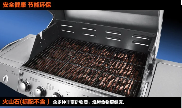 Outdoor BBQ Grill, 6 Burners, Side Gas Oven with Skewer and Motor Cover, High Quality