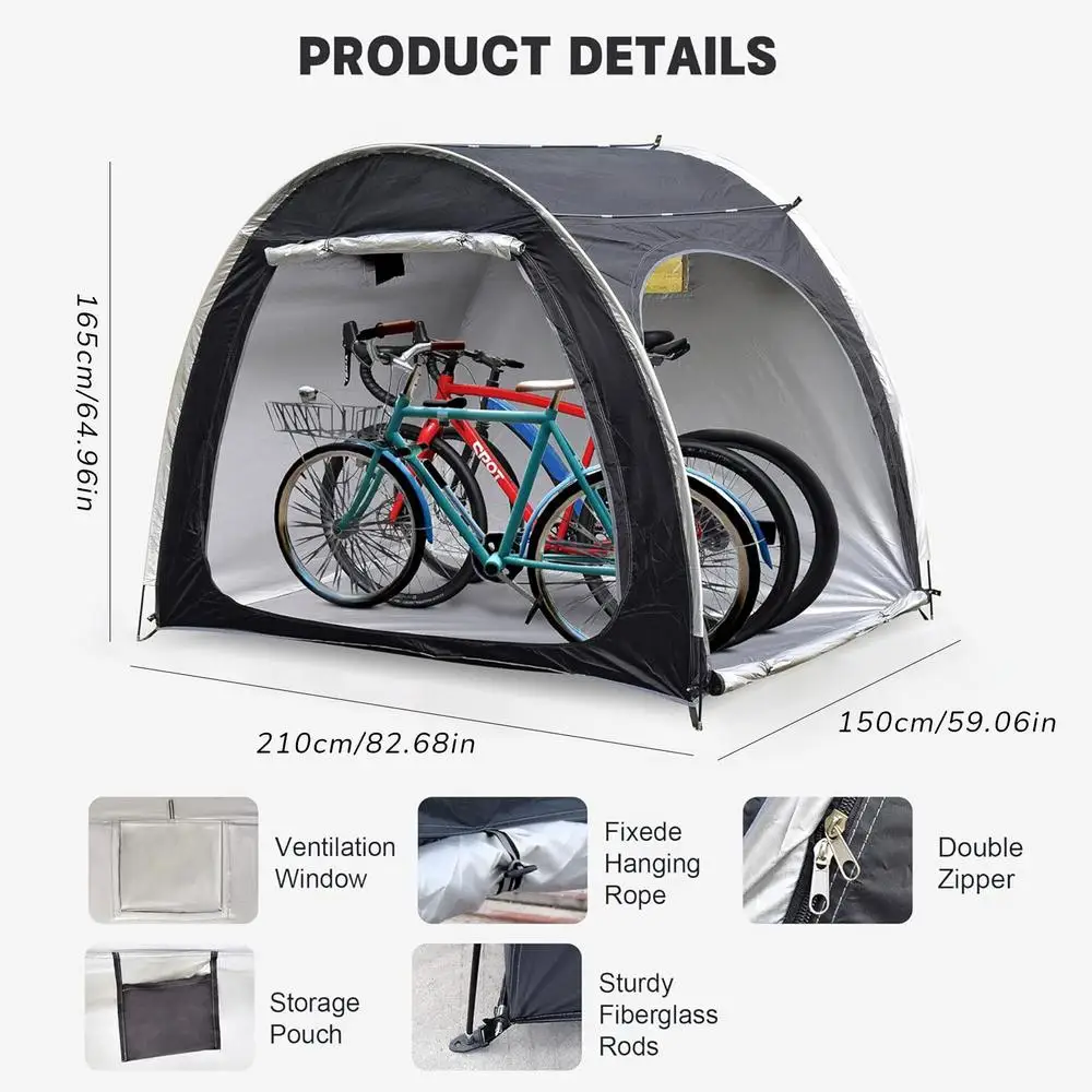 1.Weatherproof Protection: Defend your outdoor bikes from rain and UV rays with a fully sealed, zippered door and integrating floor design. The triple-layer tear-resistant technology and double-stitched seams ensure dependable protection in harsh weather, extending the lifespan of your cyclings and outdoor equipment