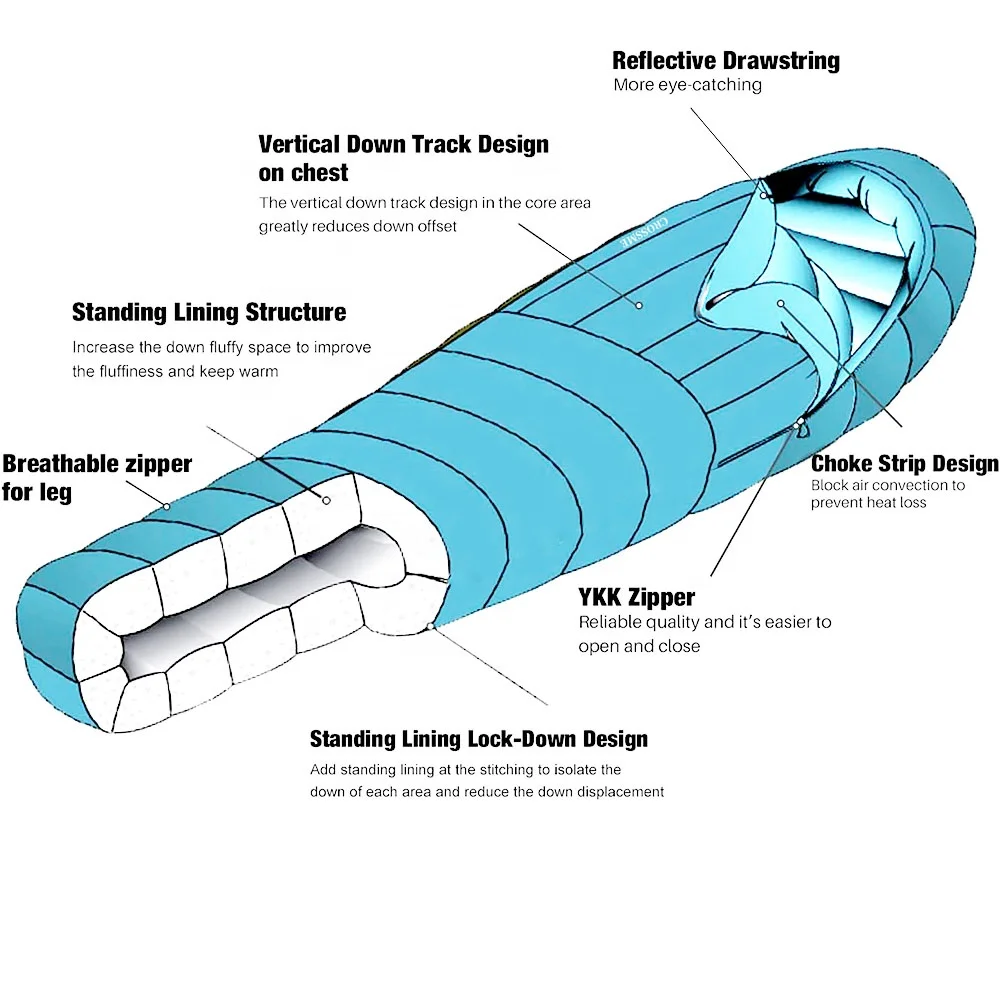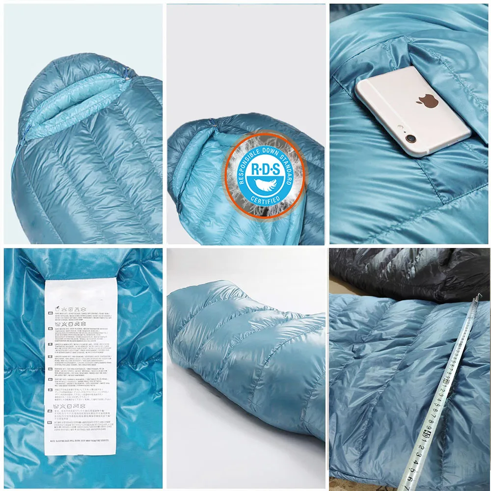 Outdoor Camping Ultralight 850FP RDS Goose Down Sleeping Bag 10D Nylon 400g 700g 800g 1000g