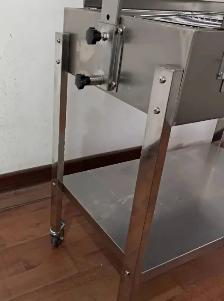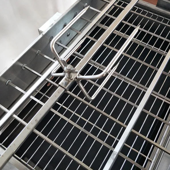 Now you can roast in your own back yard. This charcoal bbq rotisserie grill spit, high quality stainless steel material, ideal for roasting weight up to 15KG. You can roast whole chickens, All kinds of meat string . The surface of the stainless steel frame reflects the heat from the coals to the meat . This save cooking time, saves coals. The hood helps to extend the coal burn duration, further reduces cooking time.