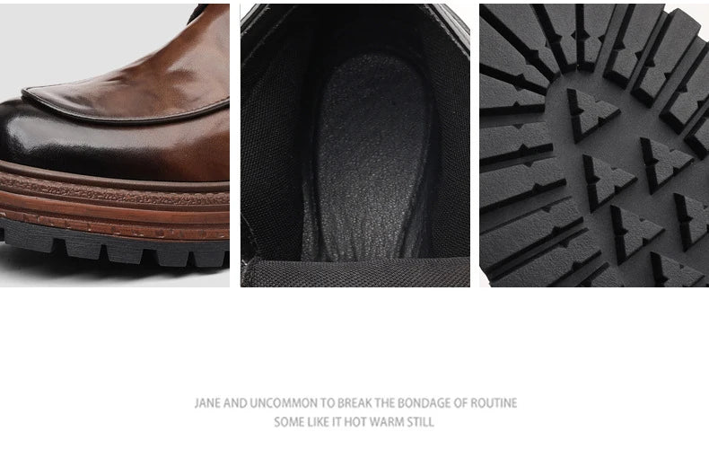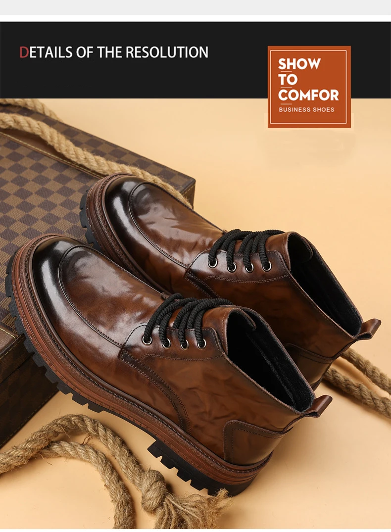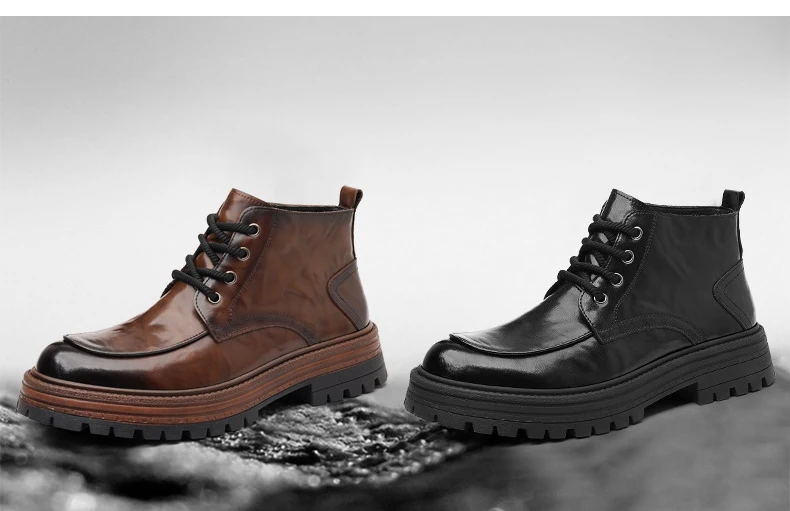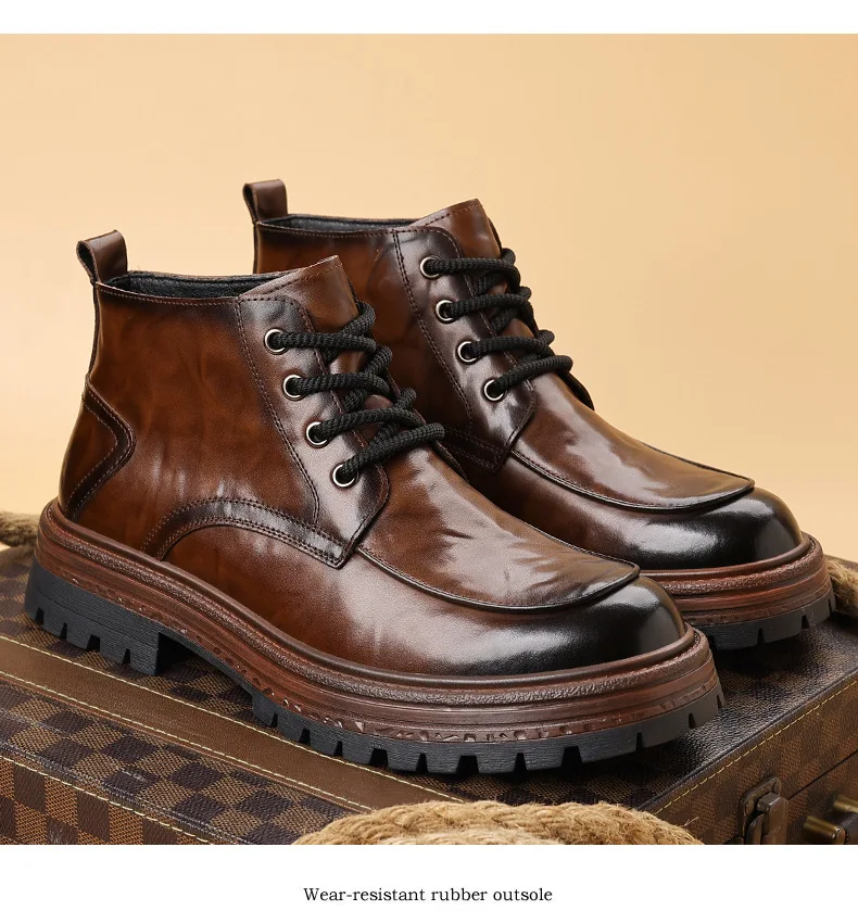 Outdoor Men High Top Leather Shoes Classic Black Leather Boots Motorcycle Breathable Riding Mid-calf Ankle Boots Warm Work Shoes