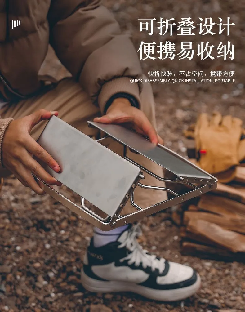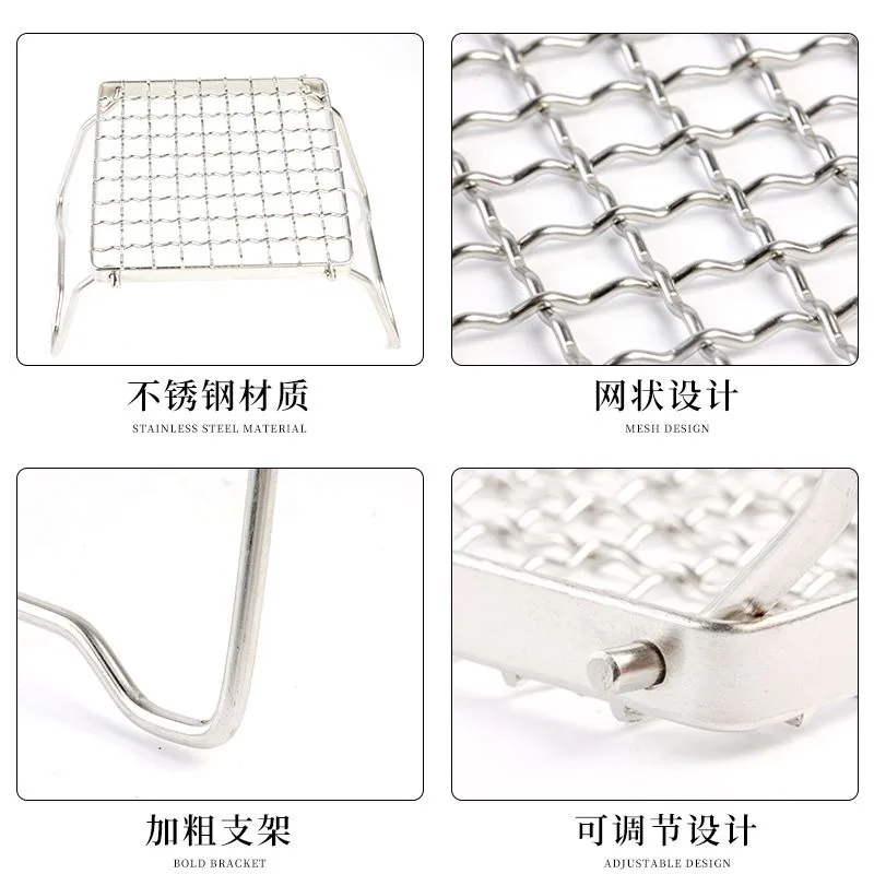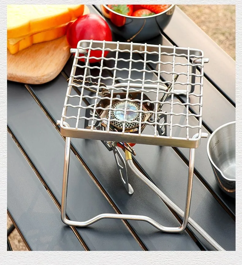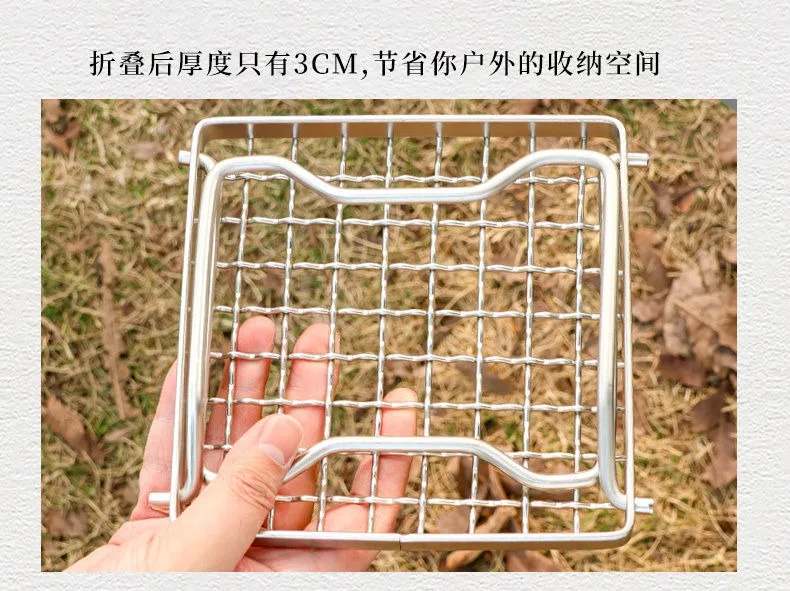 Outdoor Portable BBQ Grill Mini Pocket Stovetop Folding Campfire Bracket Grill Stainless Steel Camping Gas Stove BBQ Stand Pot
