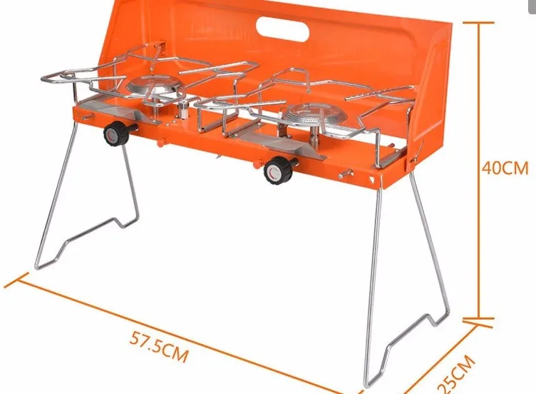 Outdoor Portable Gas Stove, Gas BBQ Grill, Double Burners Grill, with Griddle, Iron Plates
