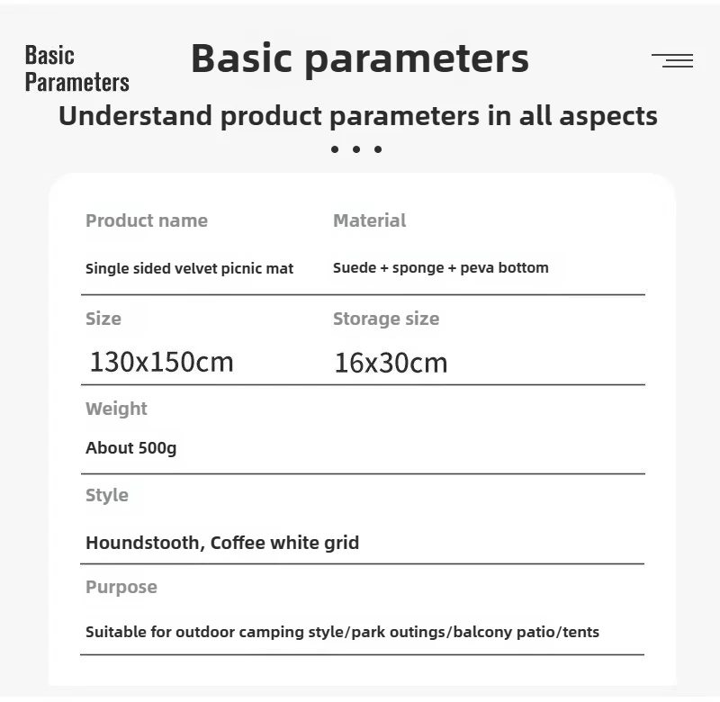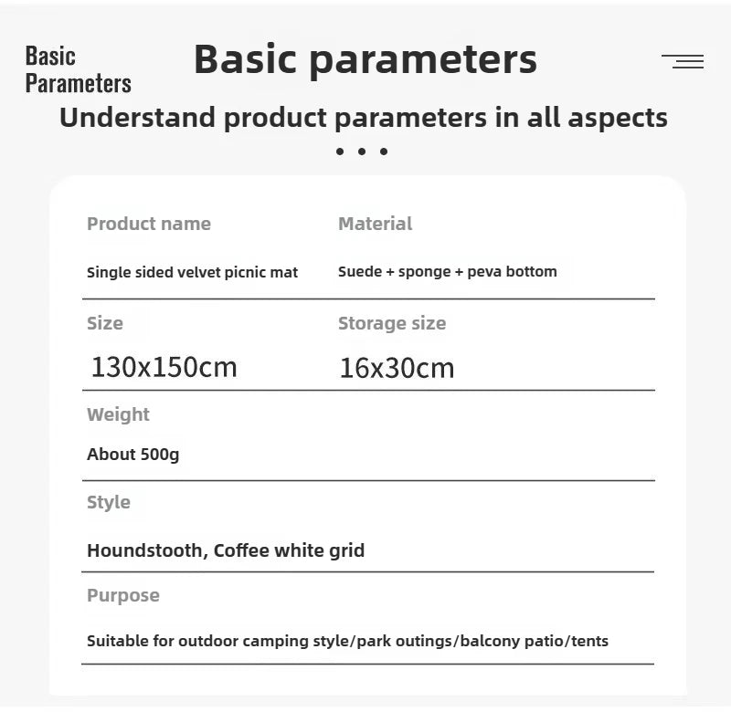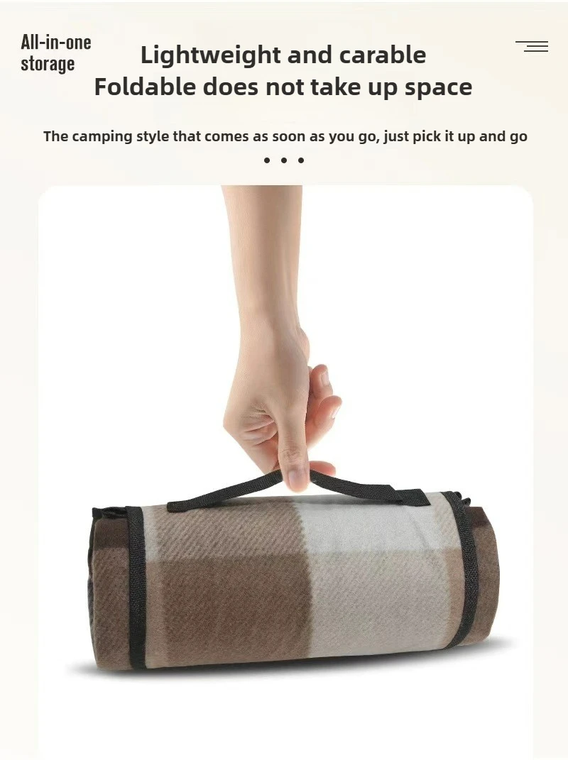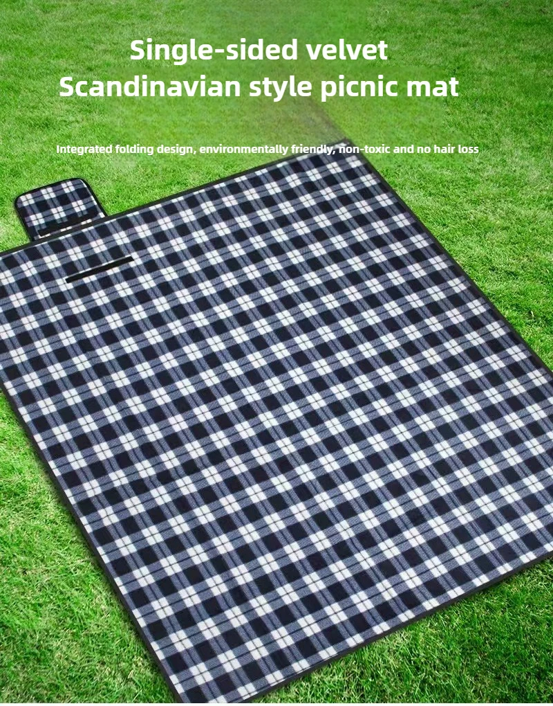 Outdoor Single-sided Velvet Folding Picnic Mat with Waterproof Soft Thickened Grid Camping Mat on The Bottom 130cm 150cm