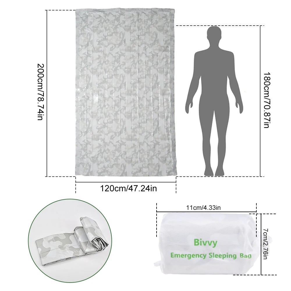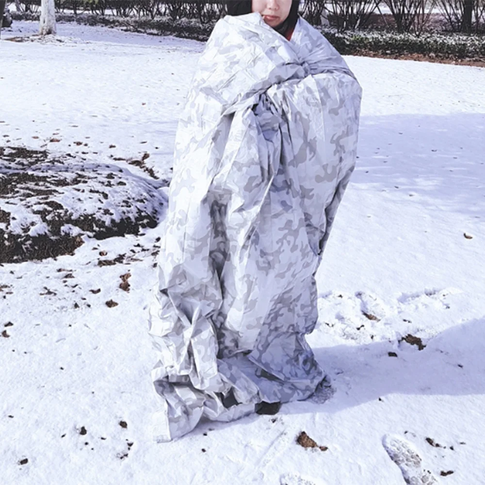 PE Emergency Sleeping Bag Camouflage Waterproof Survival Sleeping Bag 120x200cm 2 Person Outdoor Camping Bed with Storage Bag