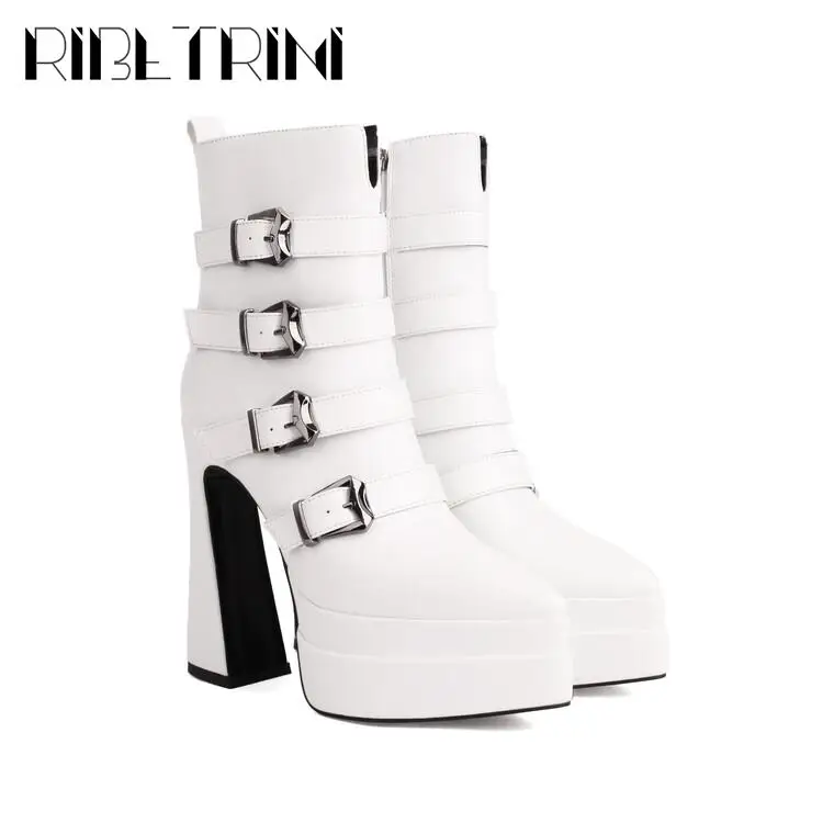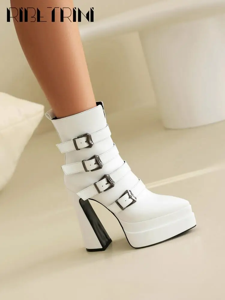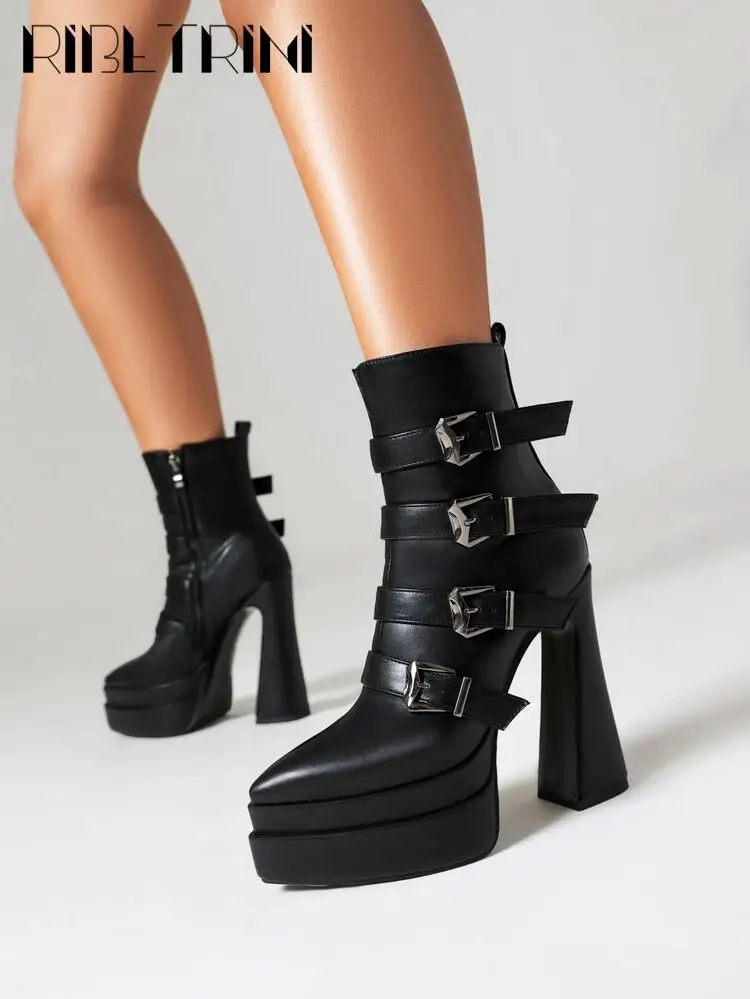 Platform Women Boots Pounted Toe High Heeled Double Platform Shoes Ankle Buckle Punk Goth Cool Fashion Brand Winter Boots Woman