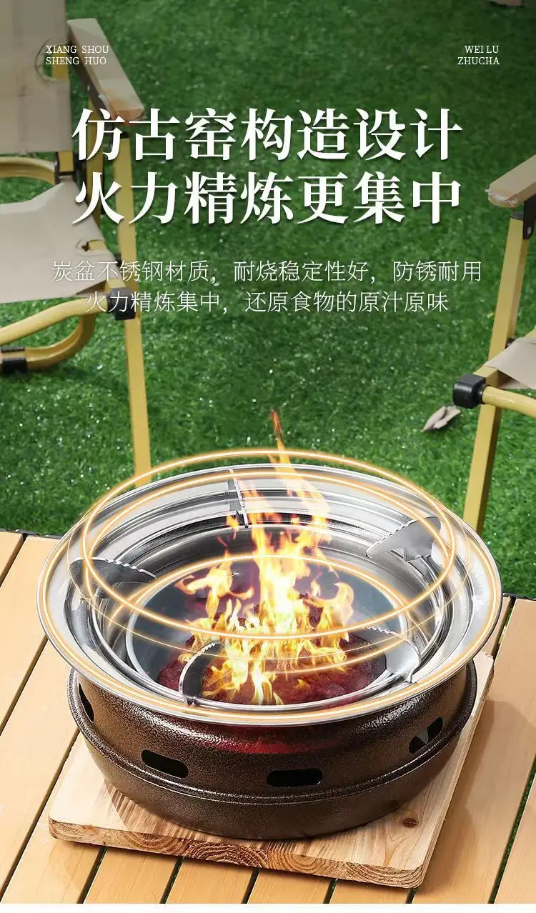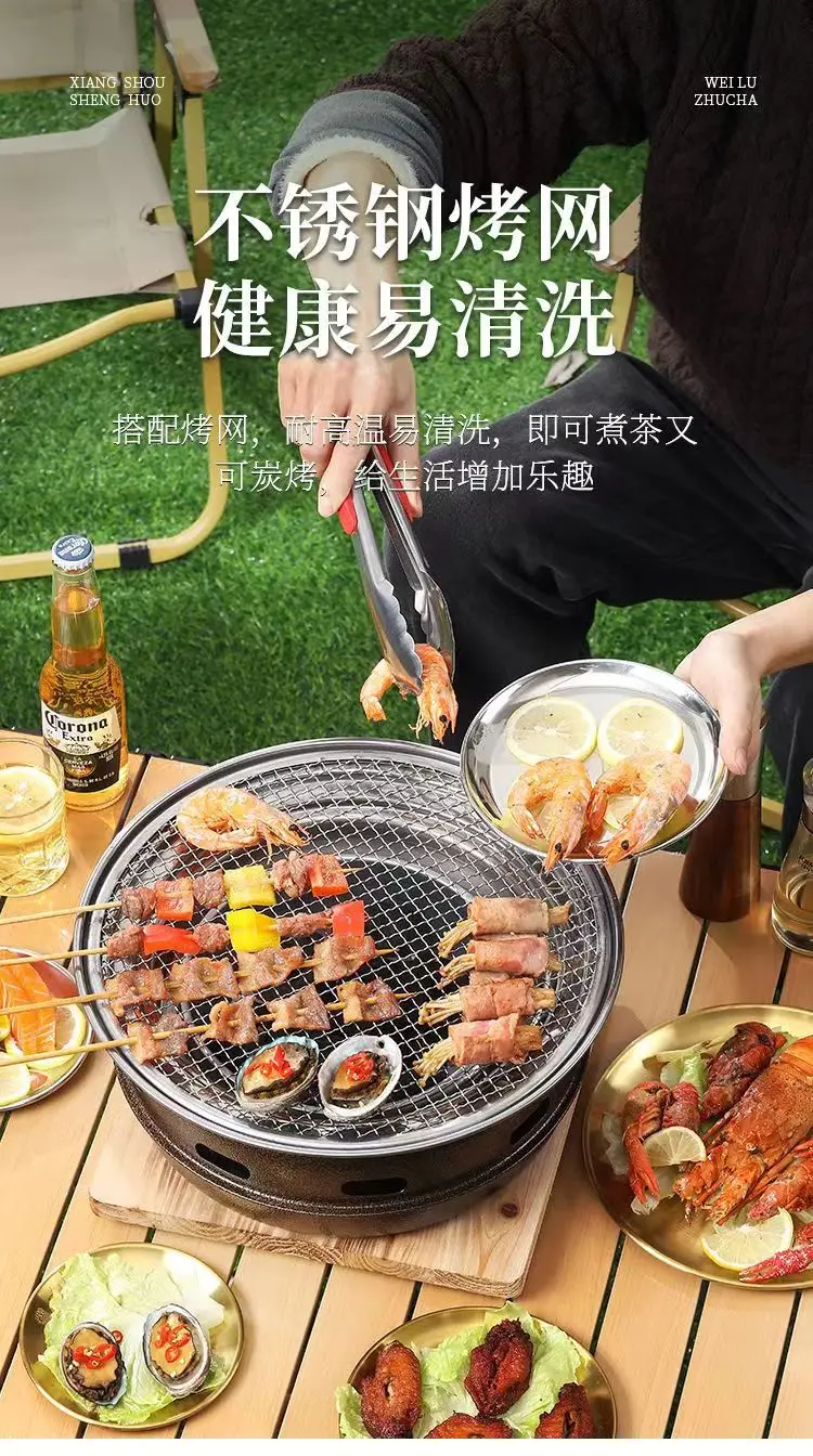 Portable Charcoal Grill Set for Outdoor BBQ Korean Style Smokeless Cooking Tea Stove Family Use