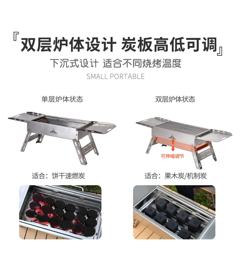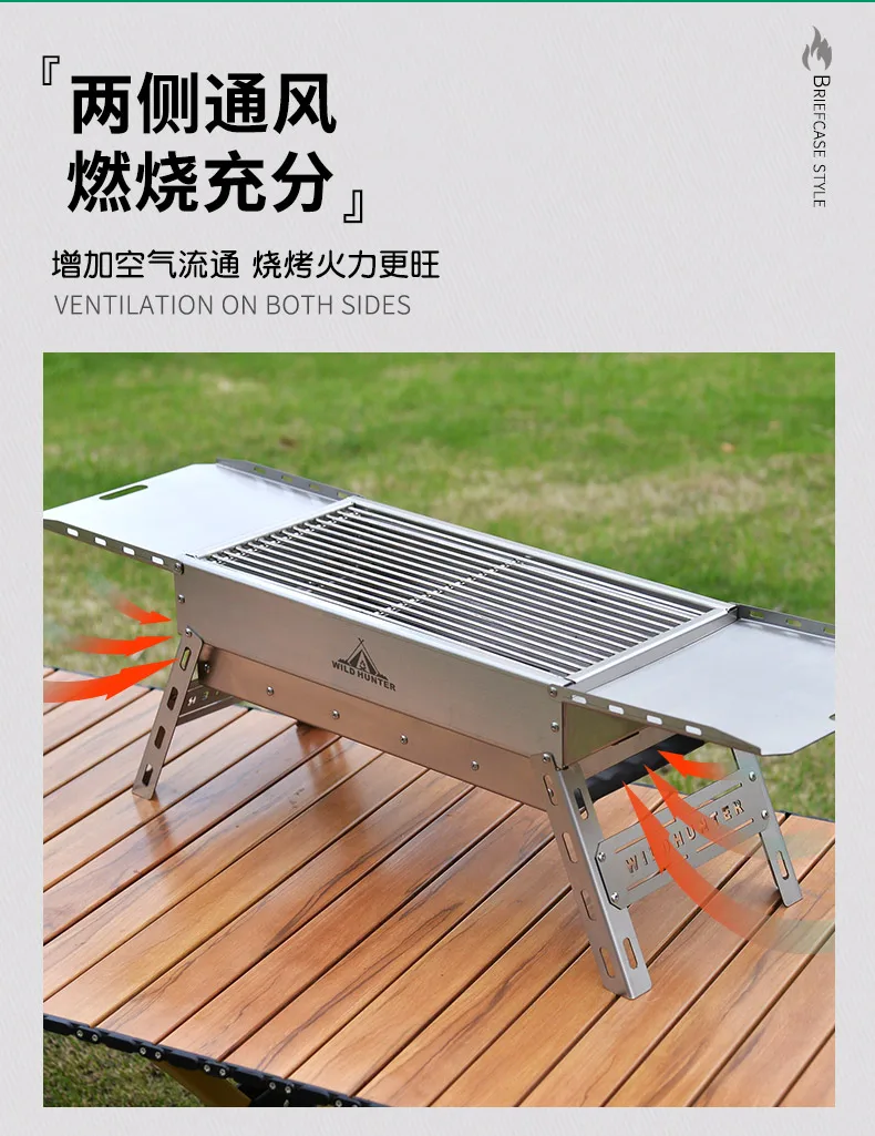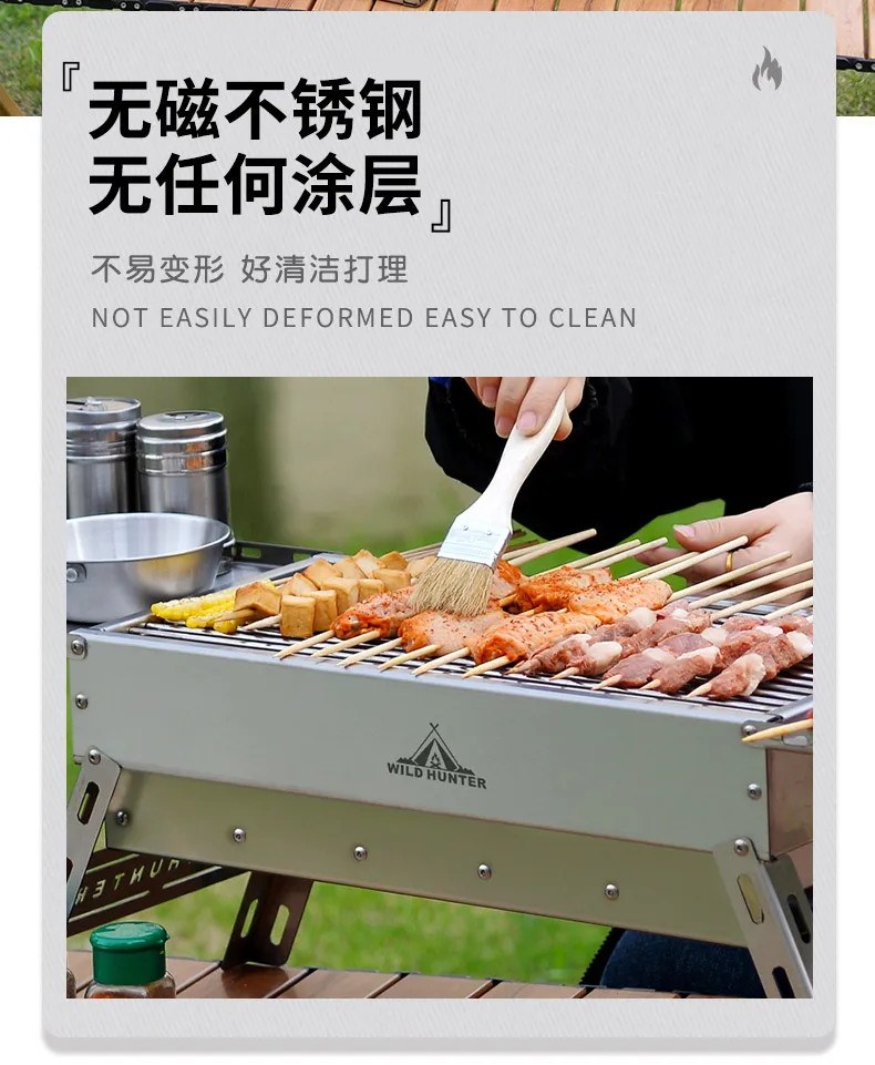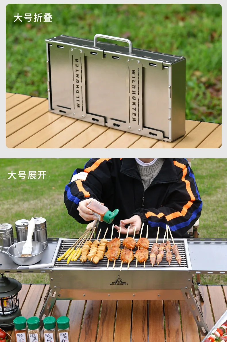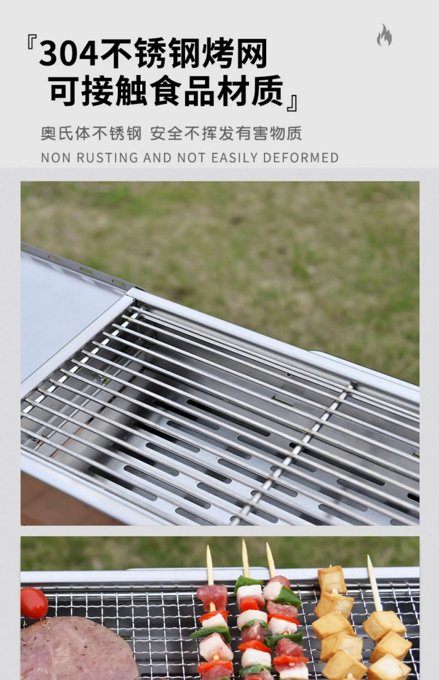 Portable Outdoor Folding BBQ Stainless Steel Charcoal Barbecue Grill for Camping and Picnics