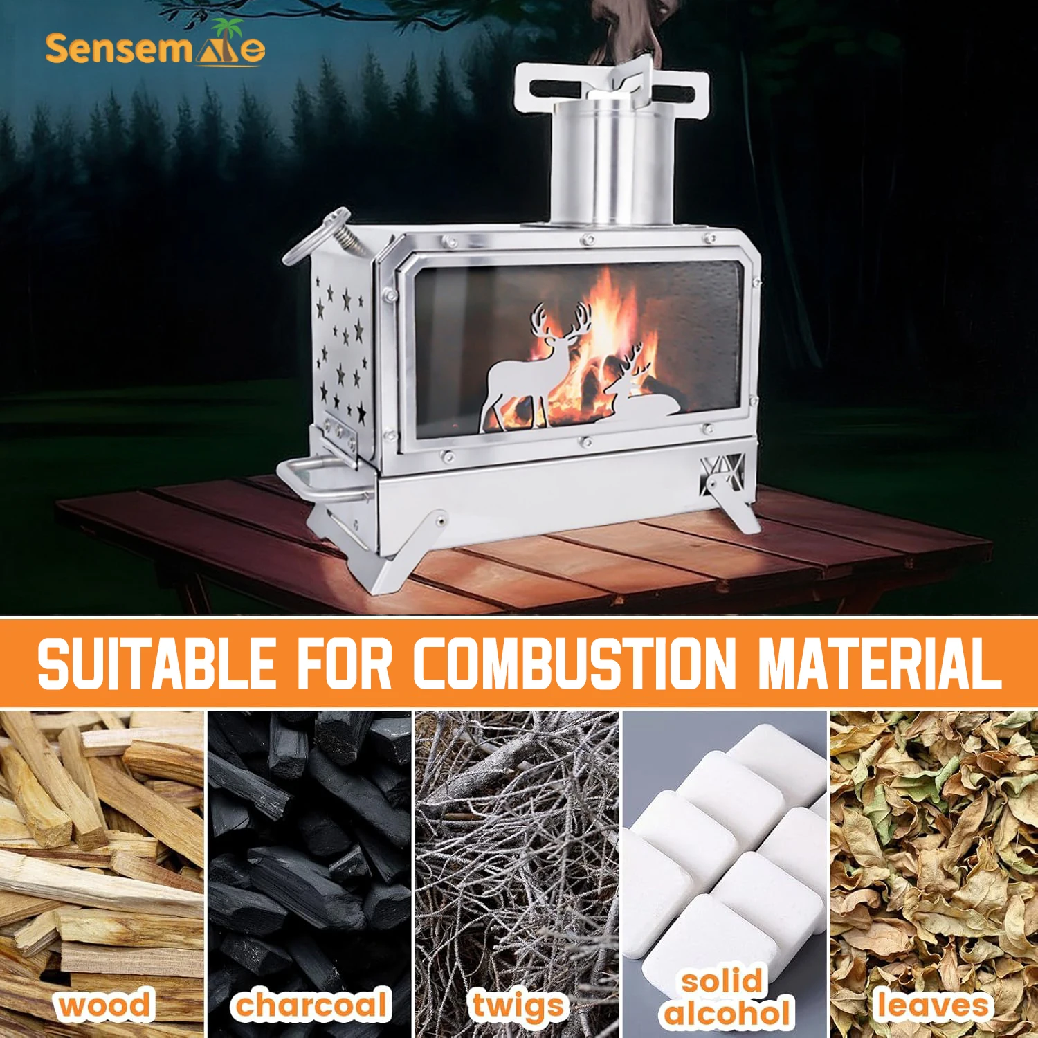 Portable Stainless Steel Wood Stove Camping Oven with Glass Window Folding Rocket Stove Mini Drawer for BBQ Grill Garden Hiking