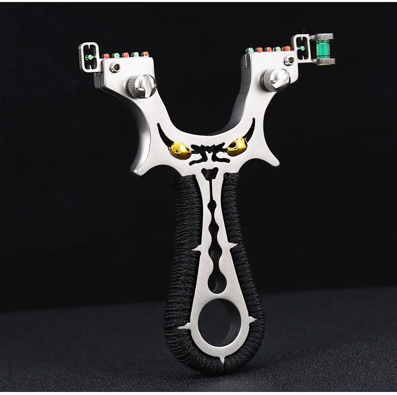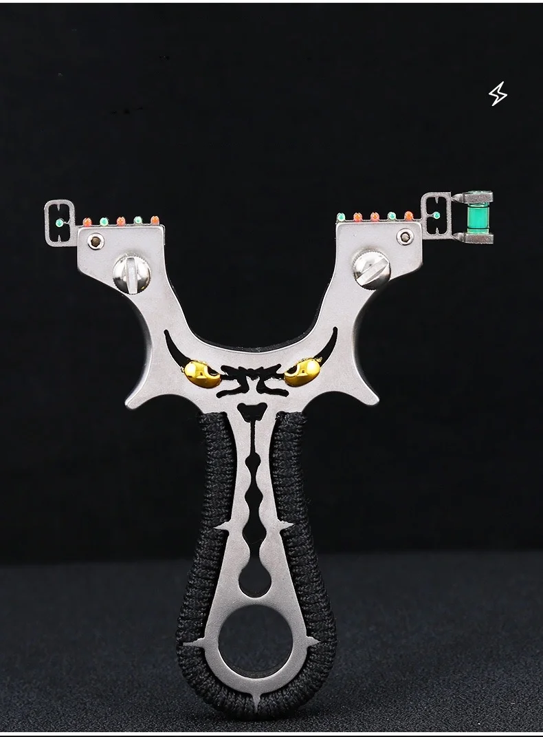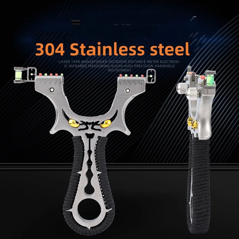 Powerful 304 Stainless Steel Slingshot Precise Shooting Outdoor Handle Hunting Catapult With Flat Rubber Band