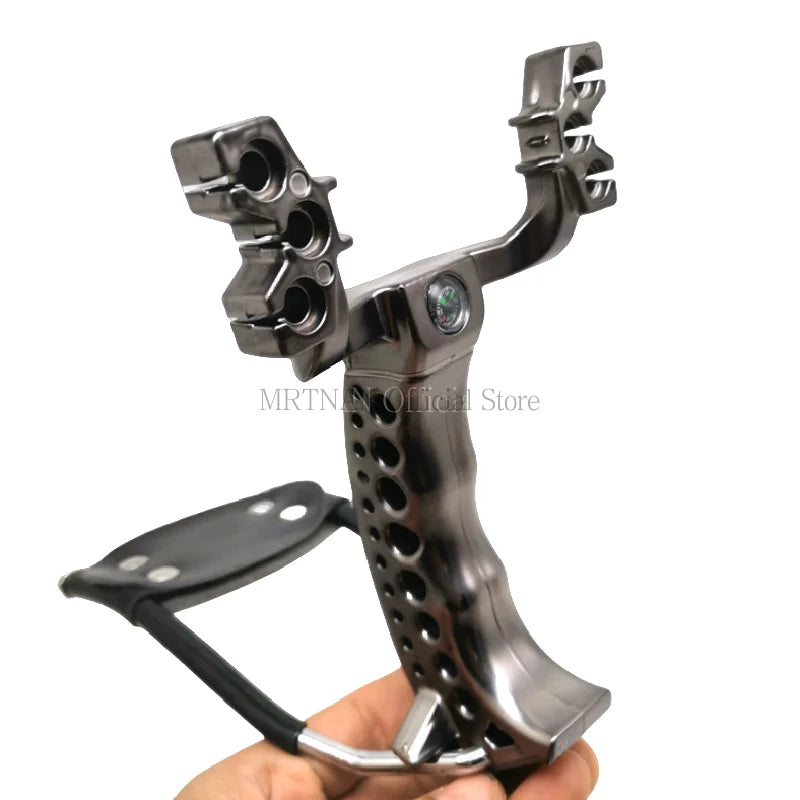 Most Powerful: Professional solid hunting slingshot with triple-strength rubber band and ergonomic handle grip for a strong and comfortable feel. There's also a magnet in the wrist rest, so you can store the steel ammo ball on it for easy access.