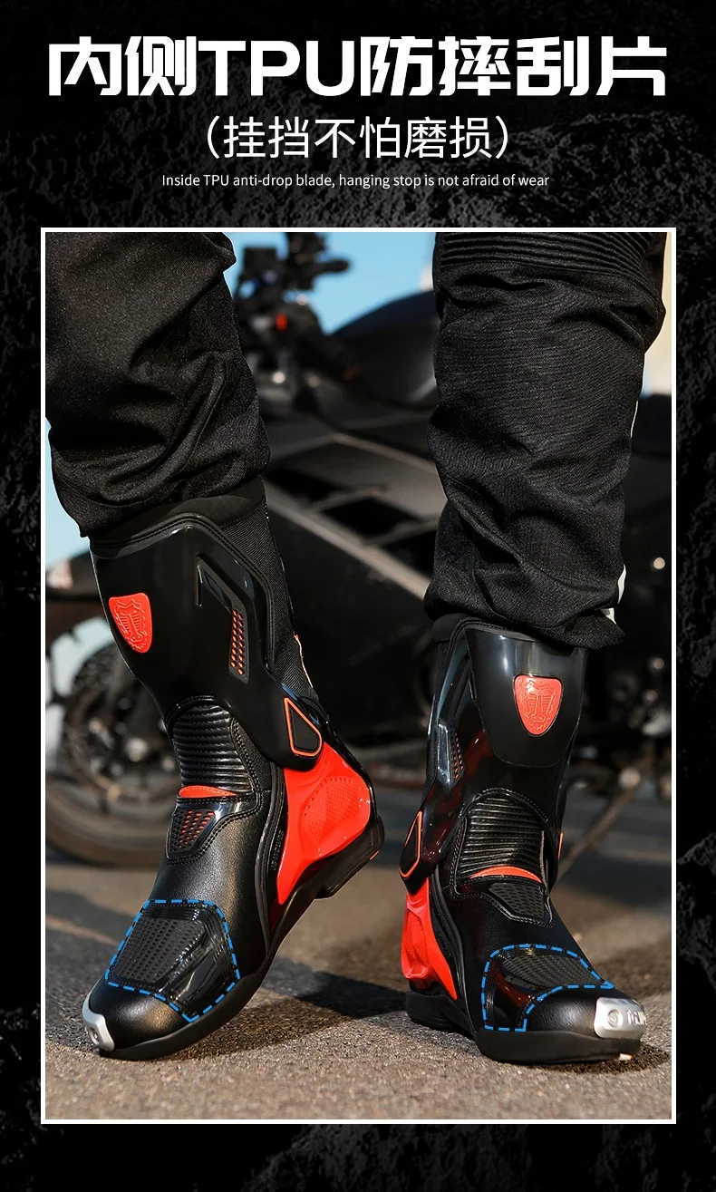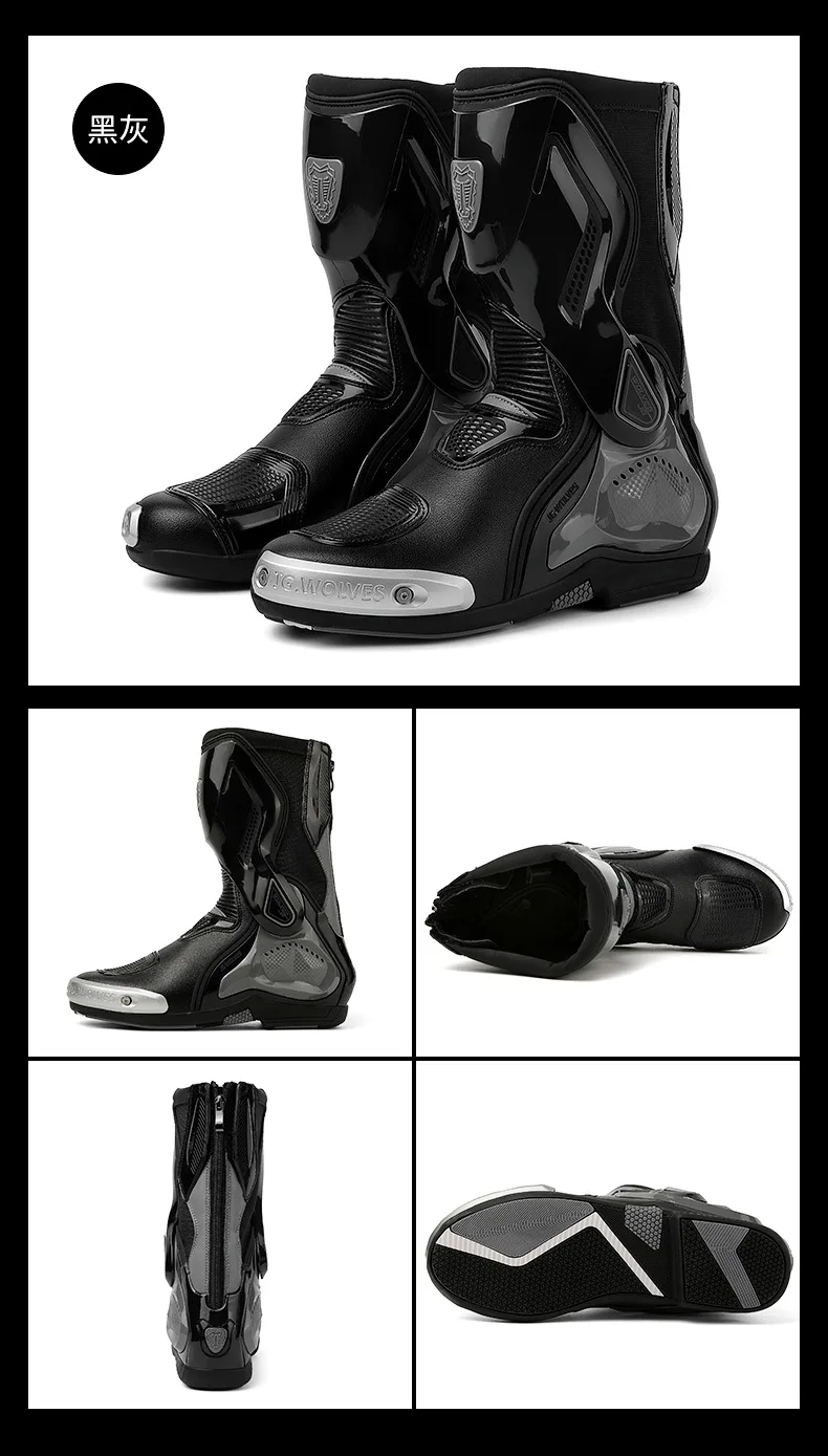 Professional Motorcycle Boots Anti-slip Mid-calf Long Ankle Off-road Racing Wear-resistant Motorcycle Rider Protective Shoes