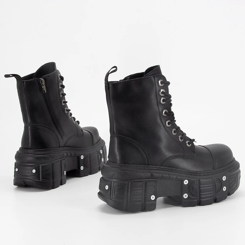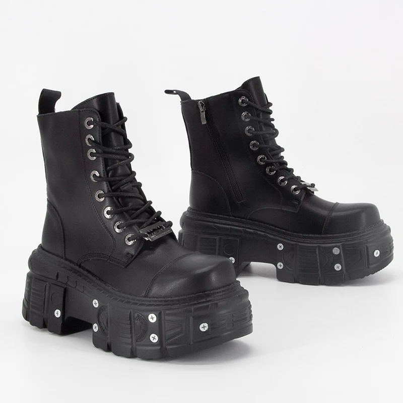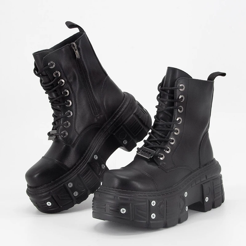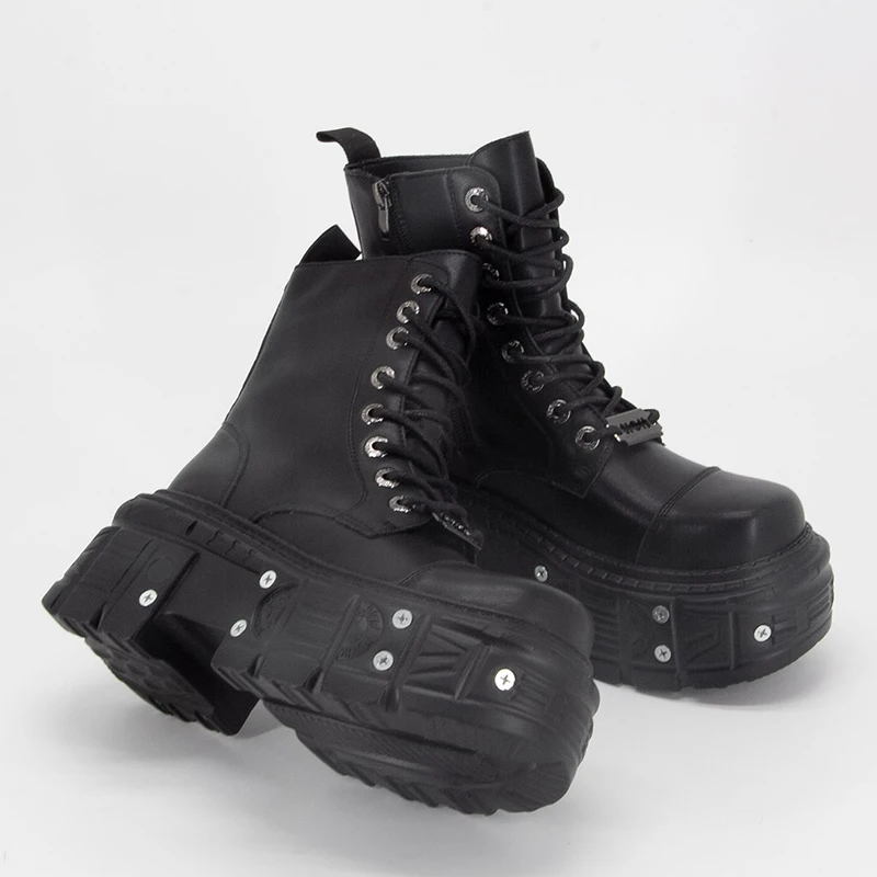 Punk Style Women Boots Lace-up Heel Height Platform Shoes Woman Gothic Ankle Rock Boots Metal Decor Man And Woman Sneakers 2025