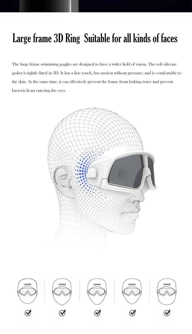 3.Large Frame and silicone,suit for kinds of face ,wearing it more confortable