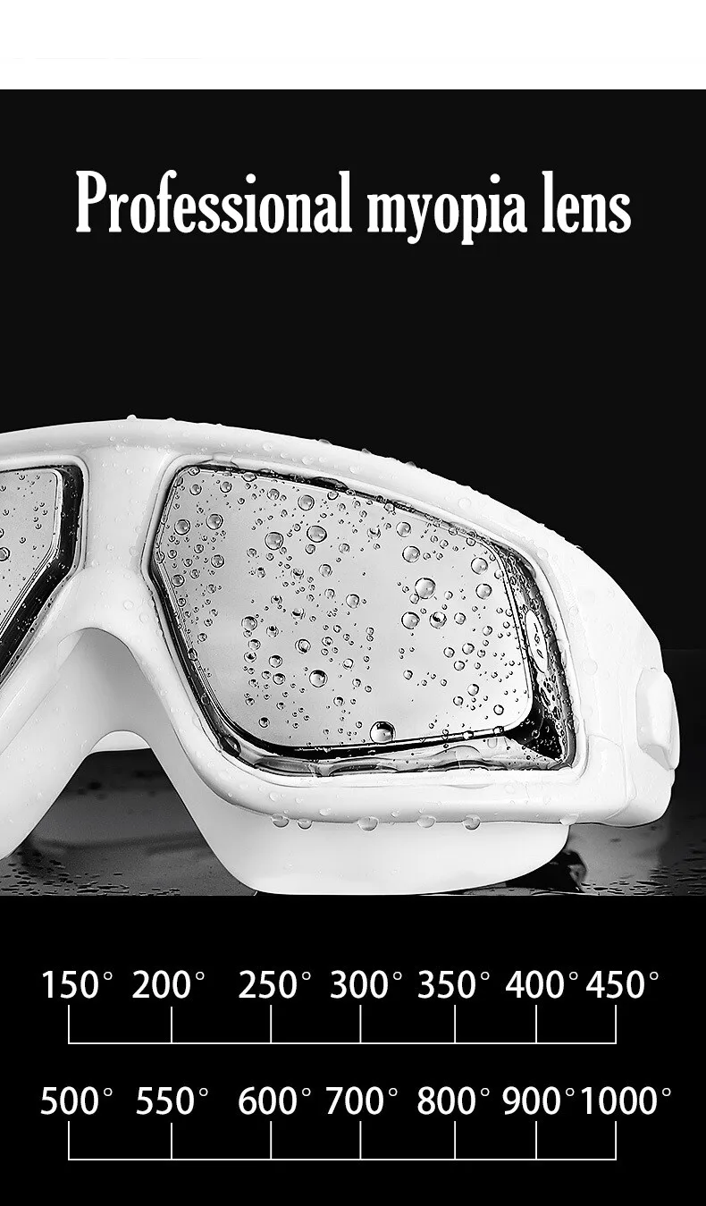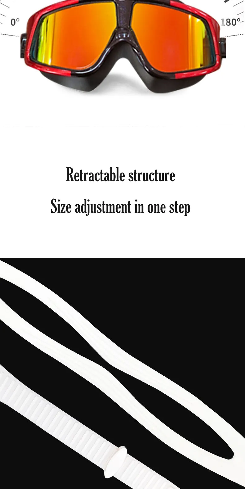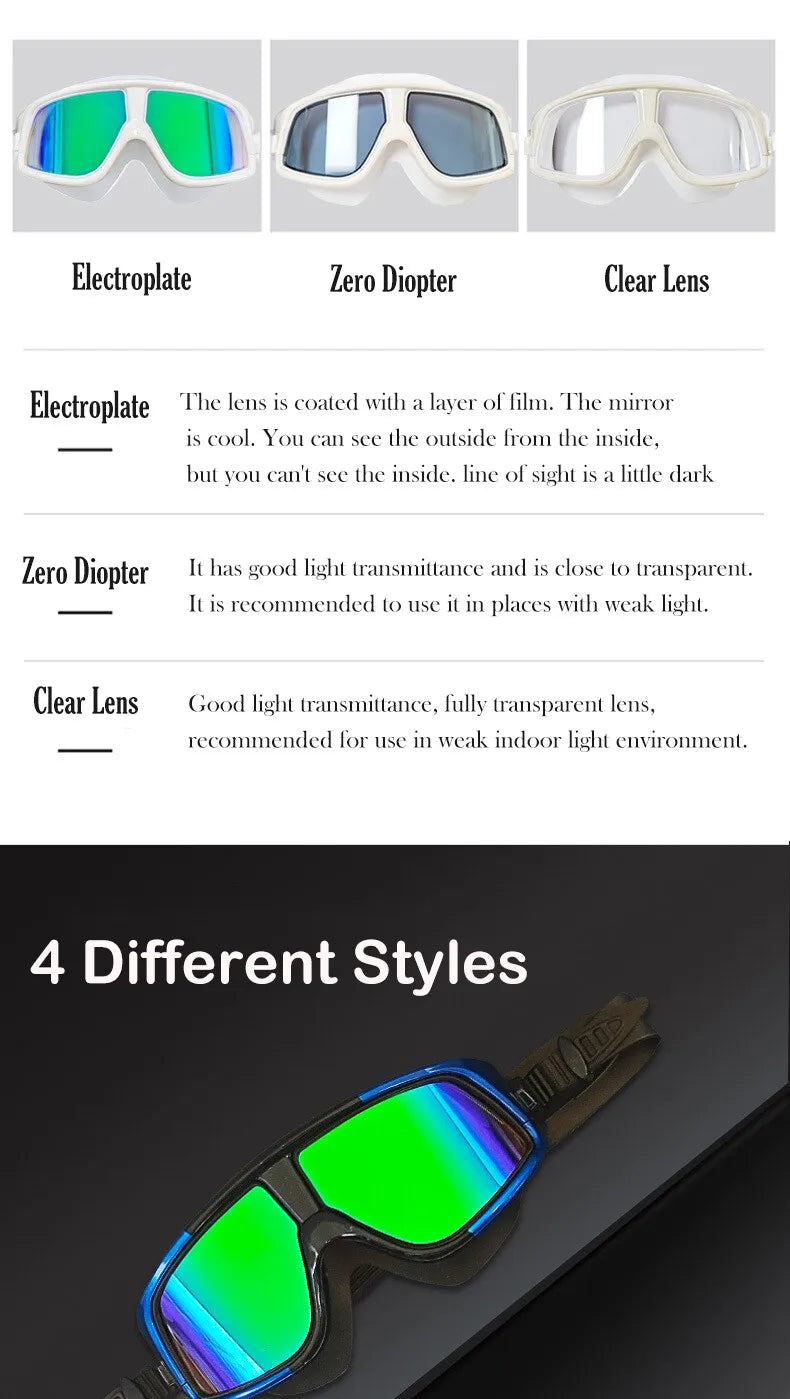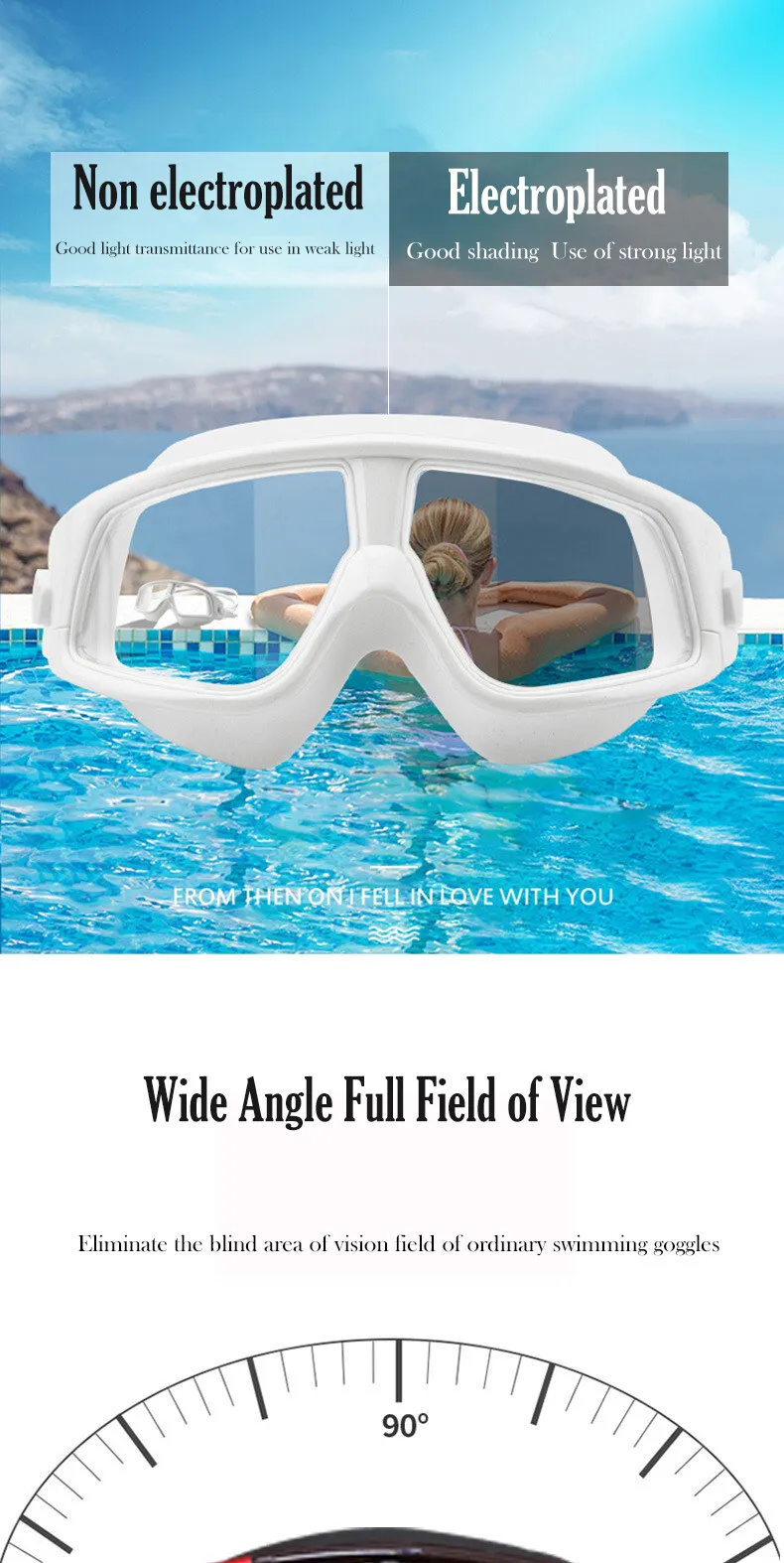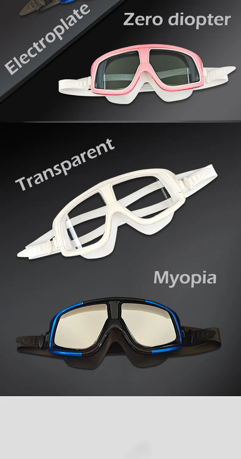 1. this is a large frame swimming glasses, including flat light, colorful electroplating and myopia.