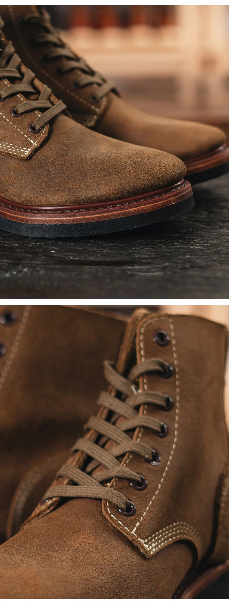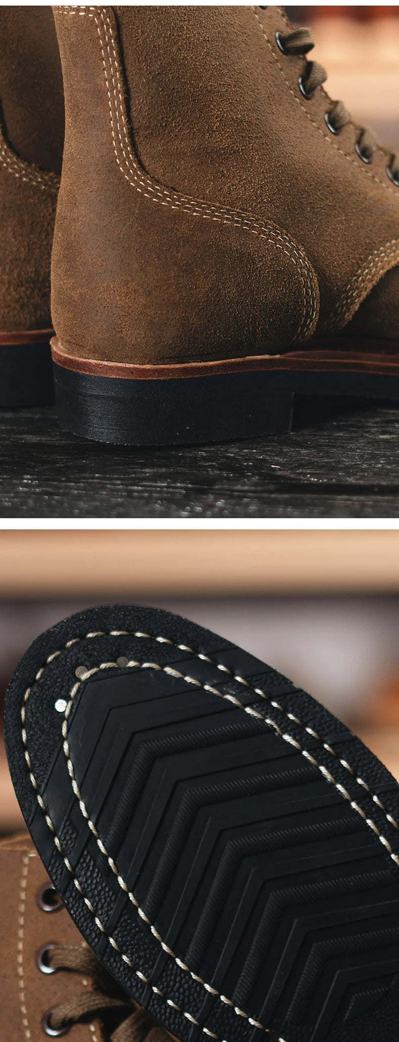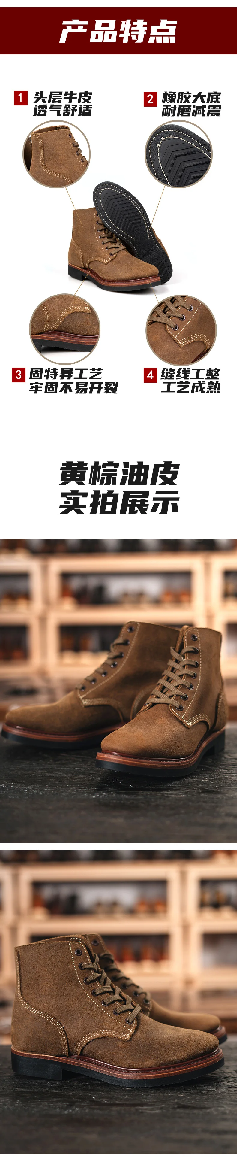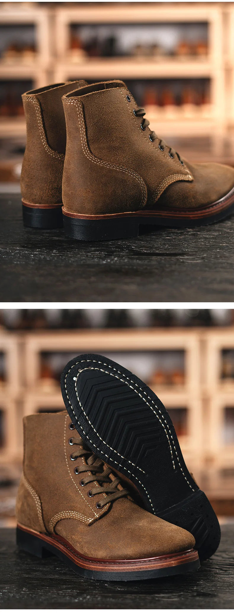 Retro Cowhide Motorcycle Boots High Top Motorbike Boots Durable Goodyear-Welted Moto Boots Wear-resistant Walking Shoes For Men
