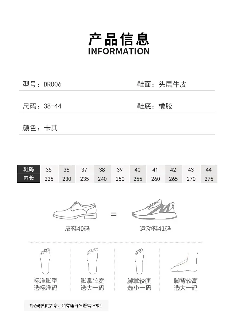 Note: After placing an order, please leave a message to note your actual foot length(cm), and we will give you reasonable suggestions, thank you!