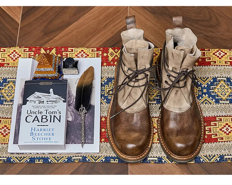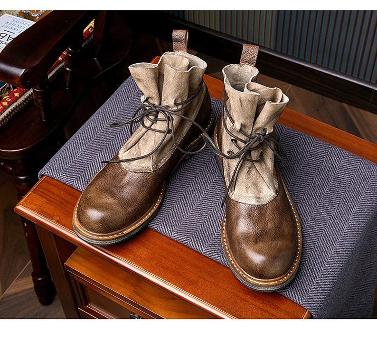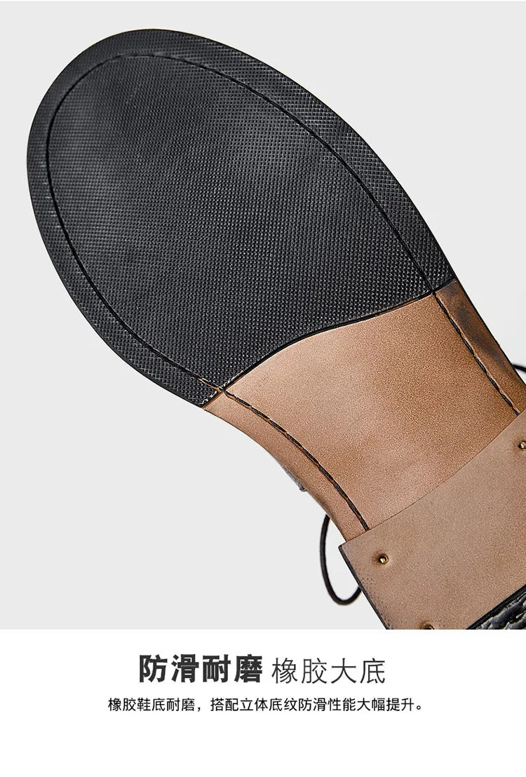 Retro Cowhide Motorcycle Boots Men Quality Breathable Motorbike Leather Boots Wear Resistant Moto Riding Shoes Summer Winter