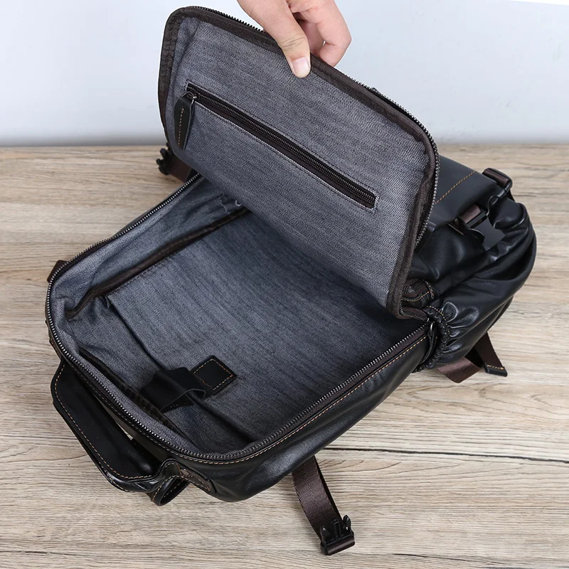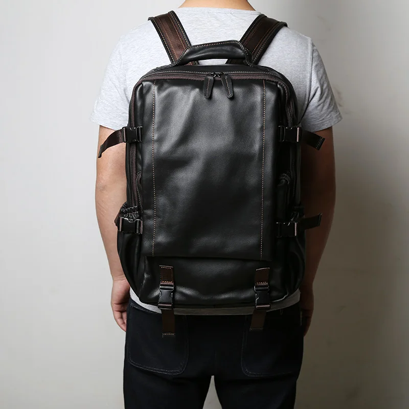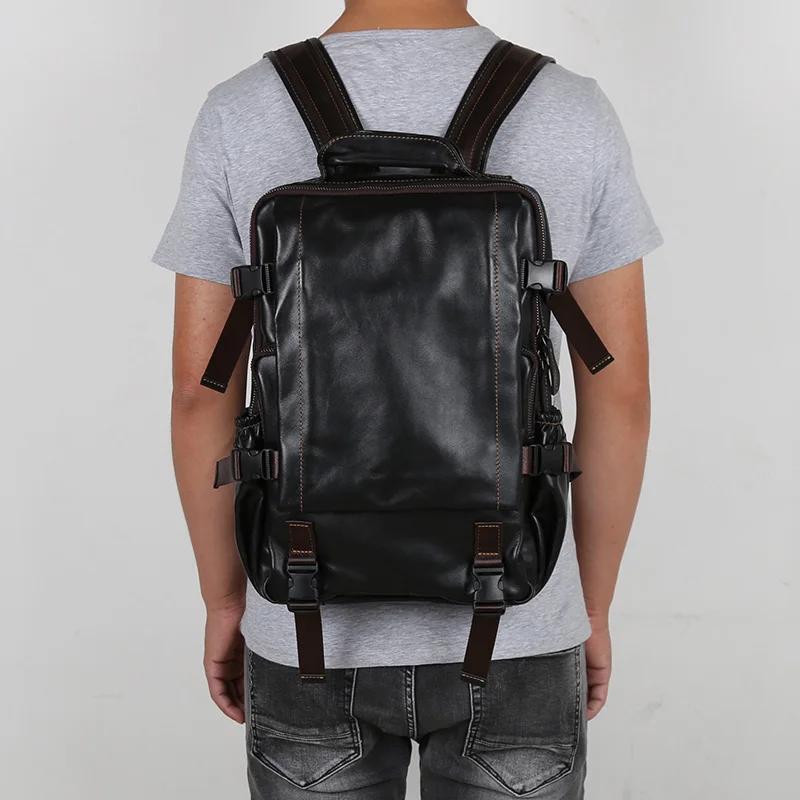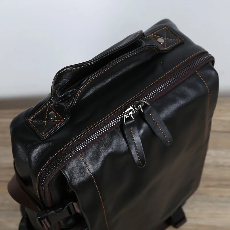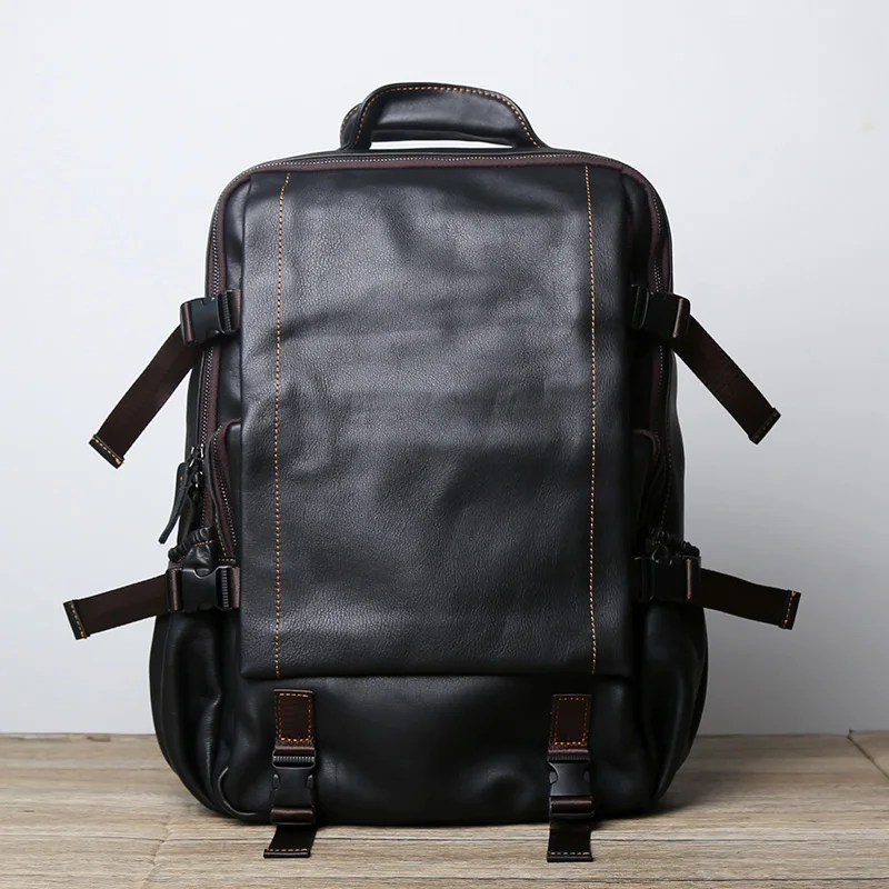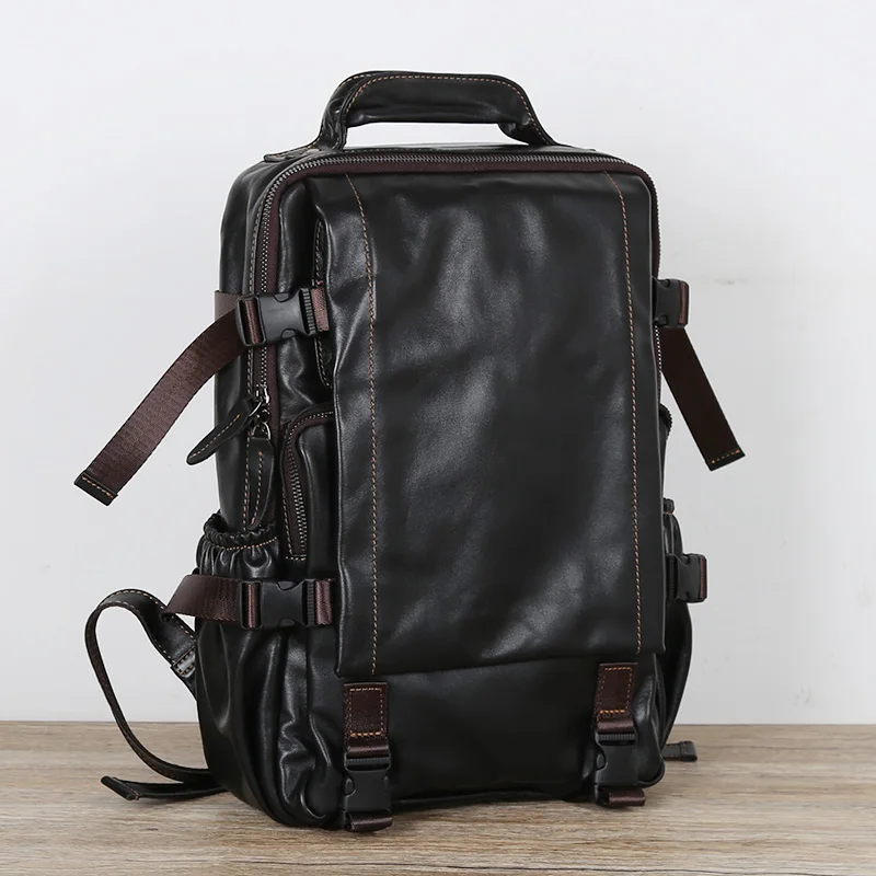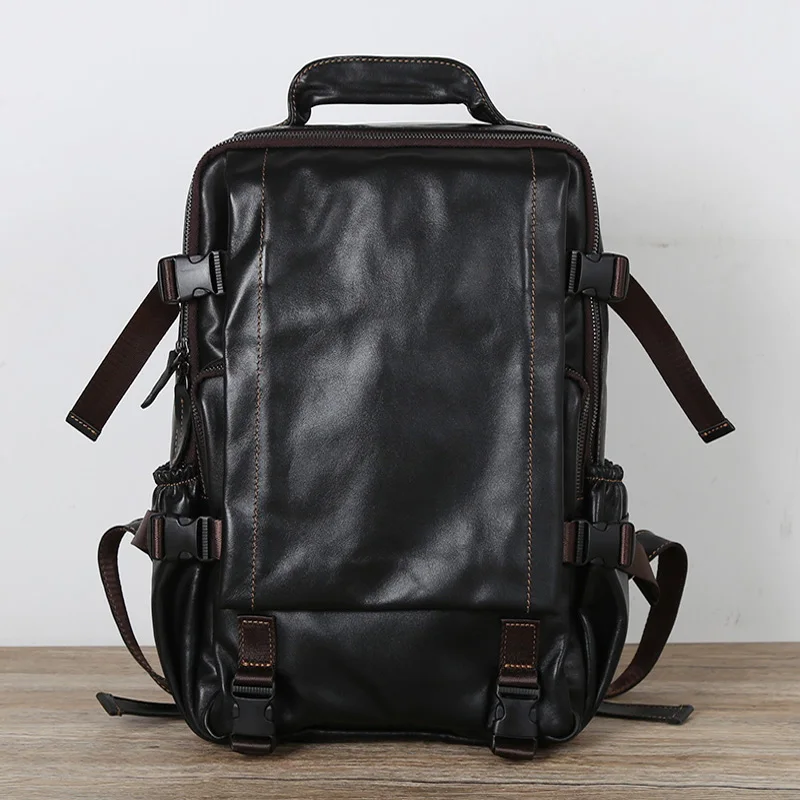 Retro First Layer Cowhide Men's Backpack Multifunctional Large Capacity Genuine Leather Leisure Travel Backpack