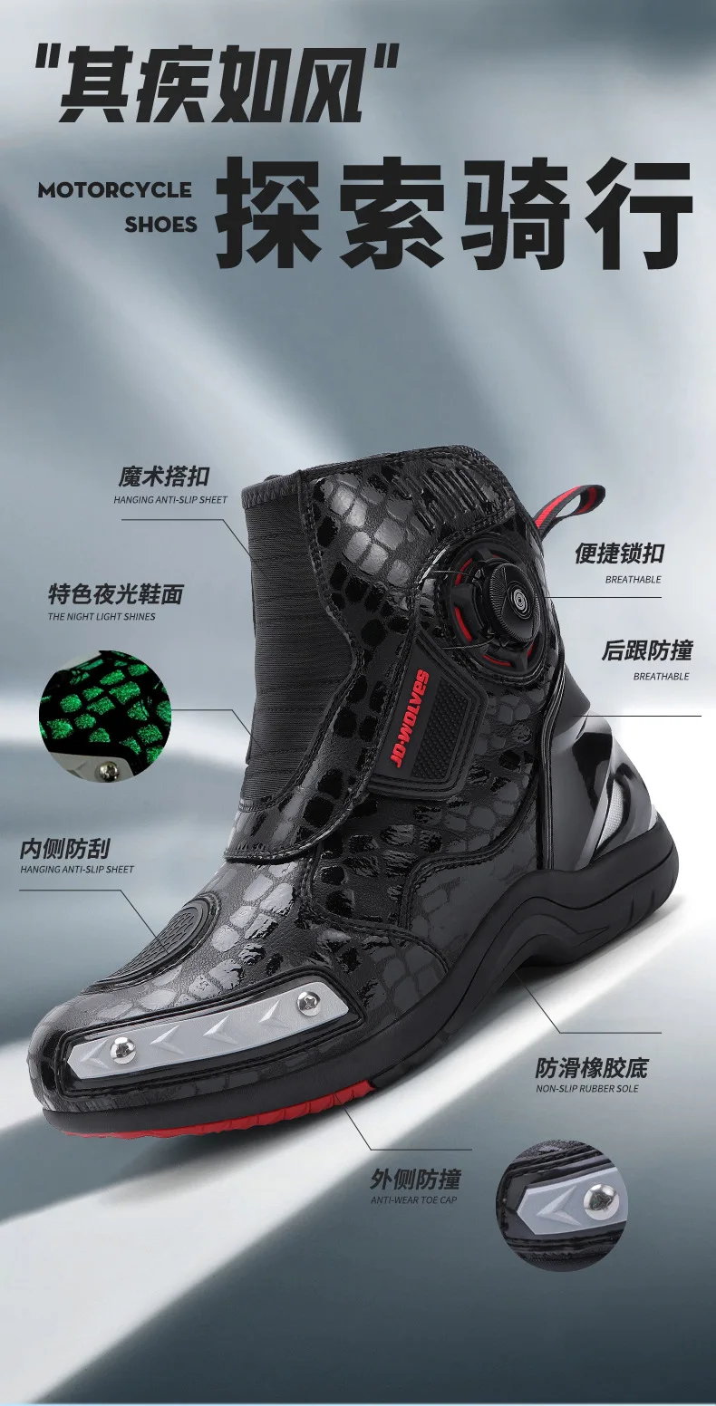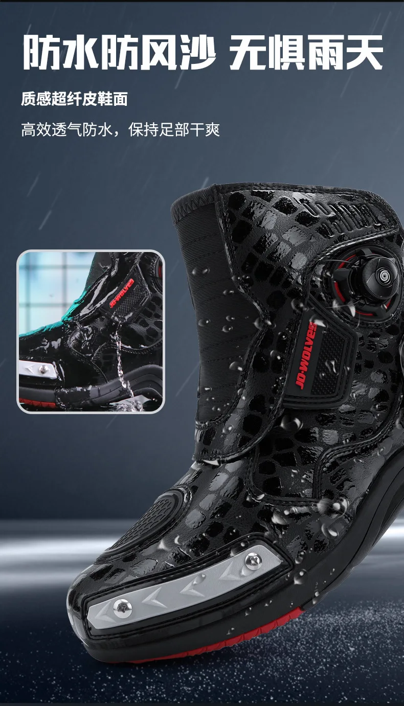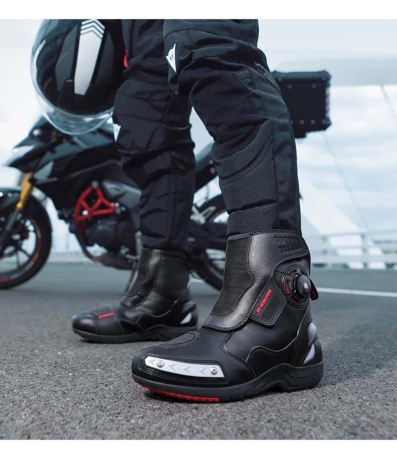 Retro Men Motocross Boots Waterproof Urban Riding Shoes Black Leather Motorcyclist Boots Wear-resistant Motorcycle Racing Shoes